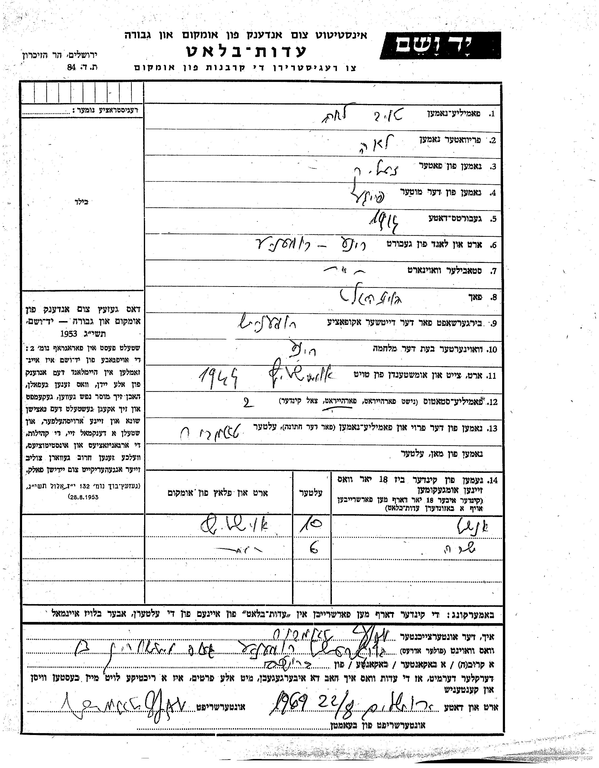 Yad Vashem - Pages of Testimony Names Memorial Collection