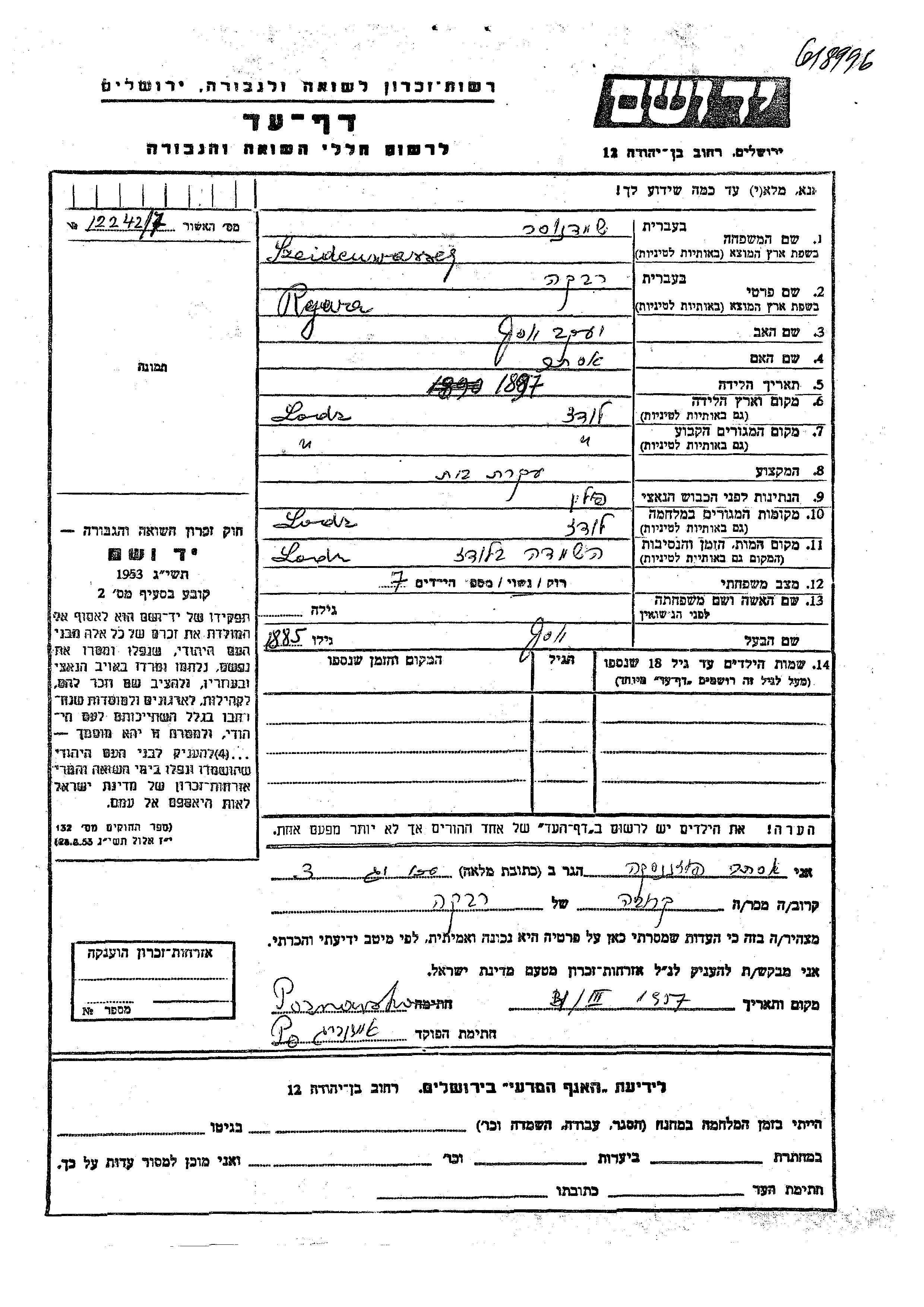 Szeidenwasser Rywa 1897 Lodz, Poland Page of Testimony