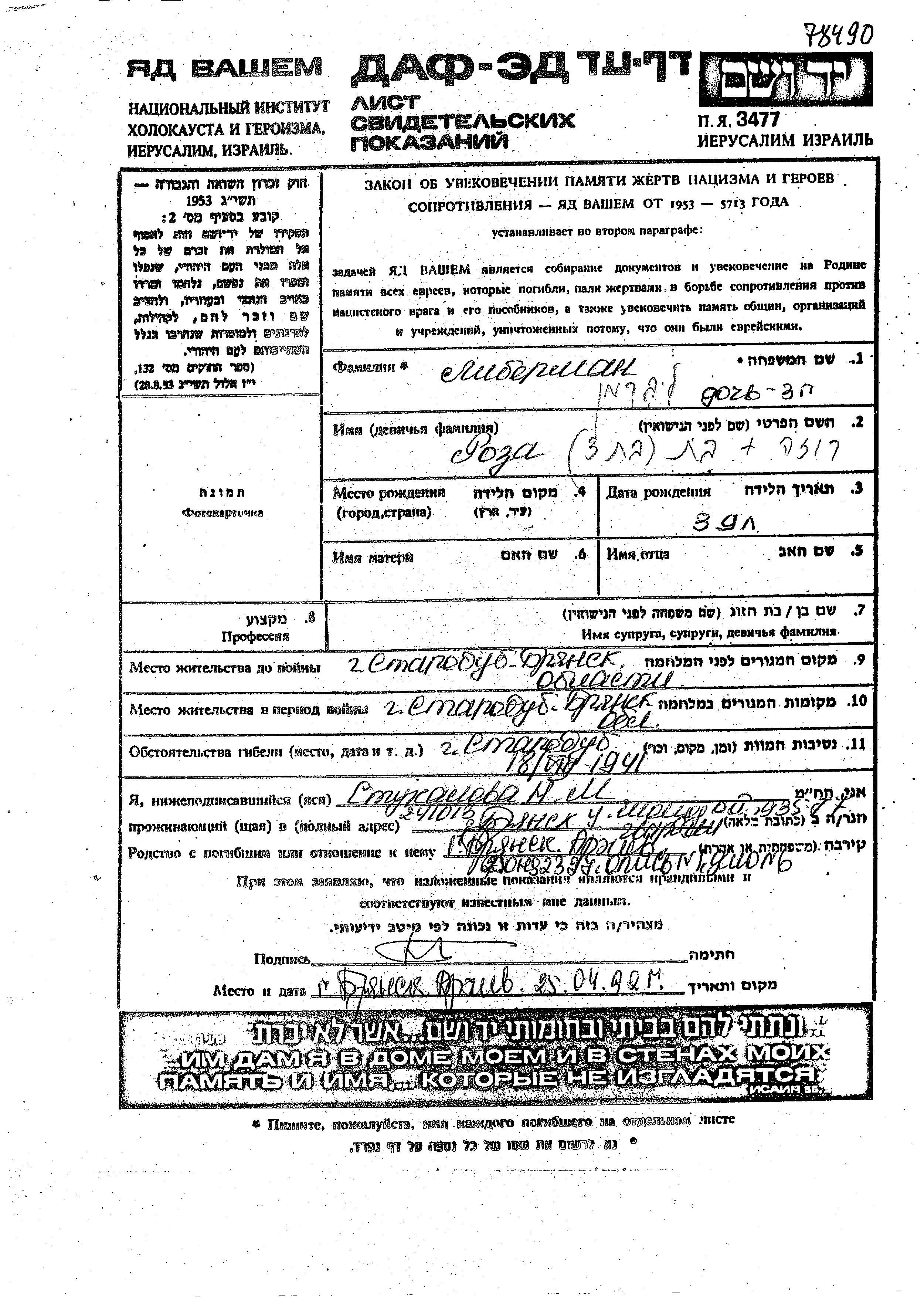 Yad Vashem - Pages of Testimony Names Memorial Collection
