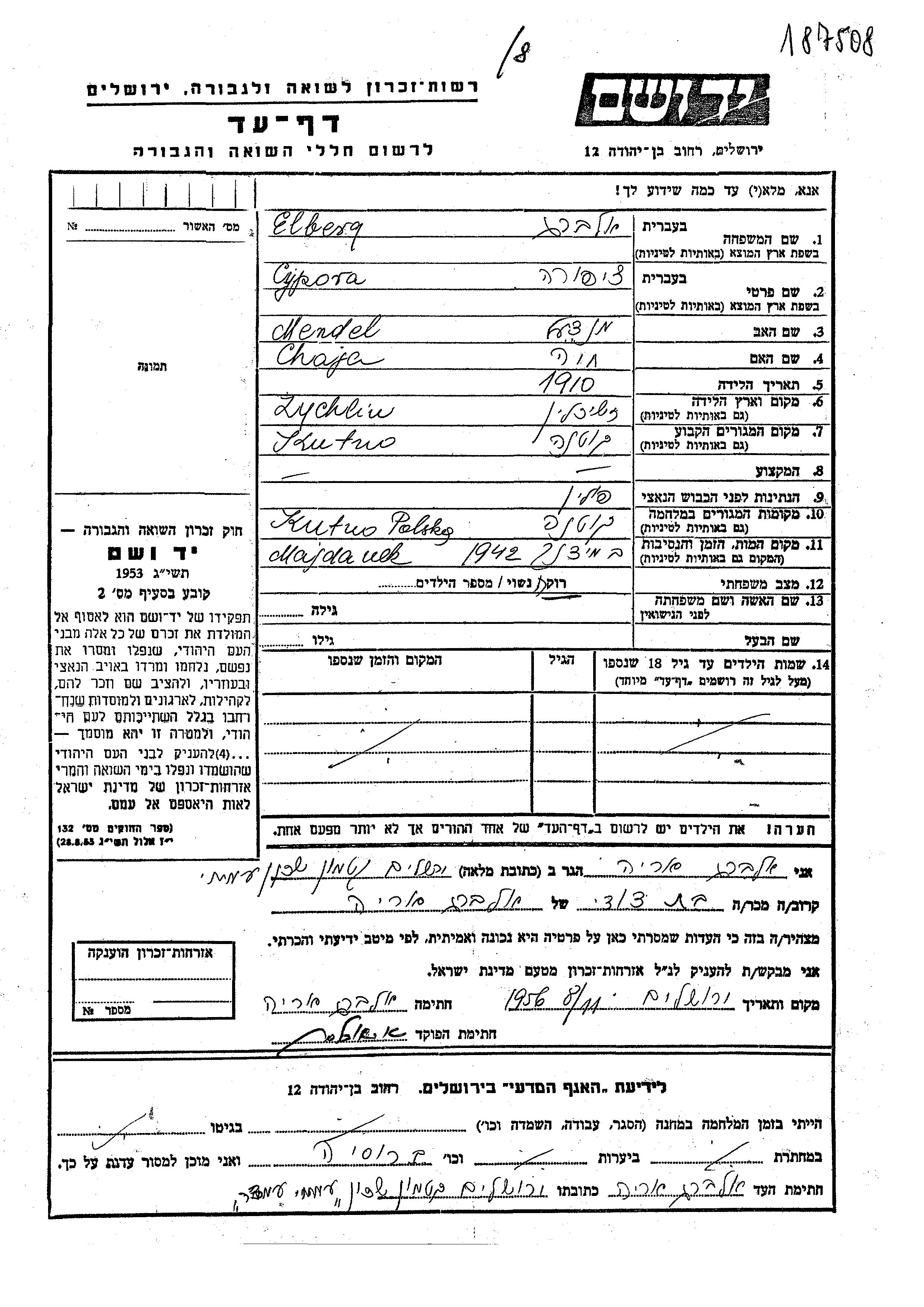 Yad Vashem - Pages of Testimony Names Memorial Collection