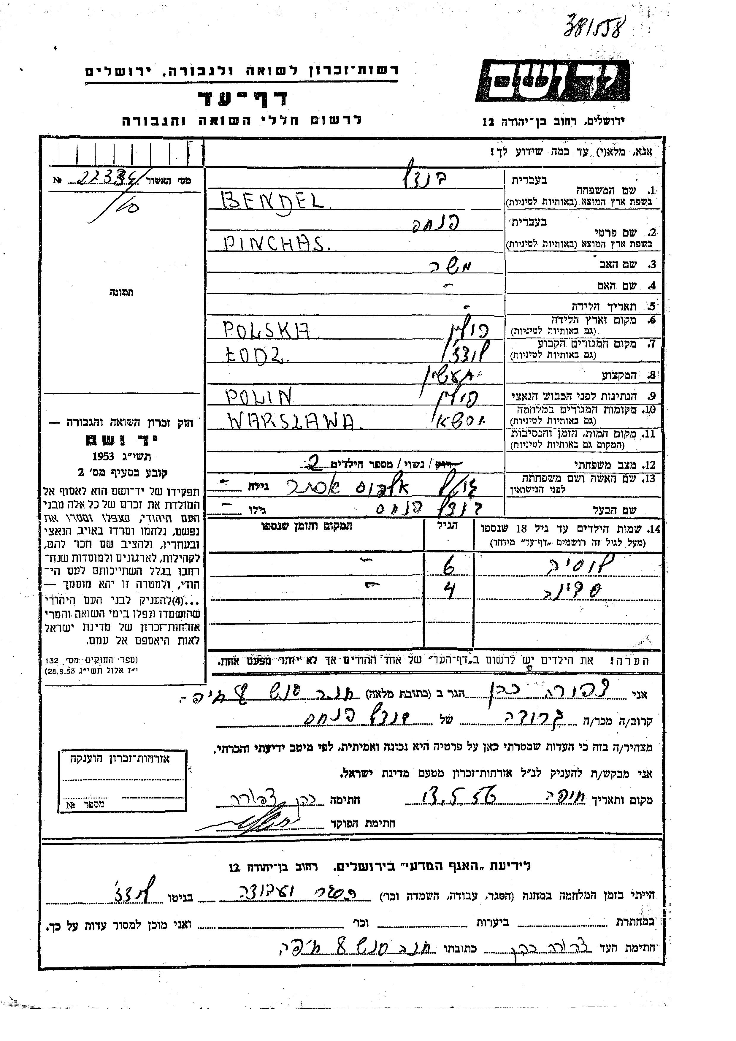 Bendel Pinchas Lodz, Poland Page of Testimony