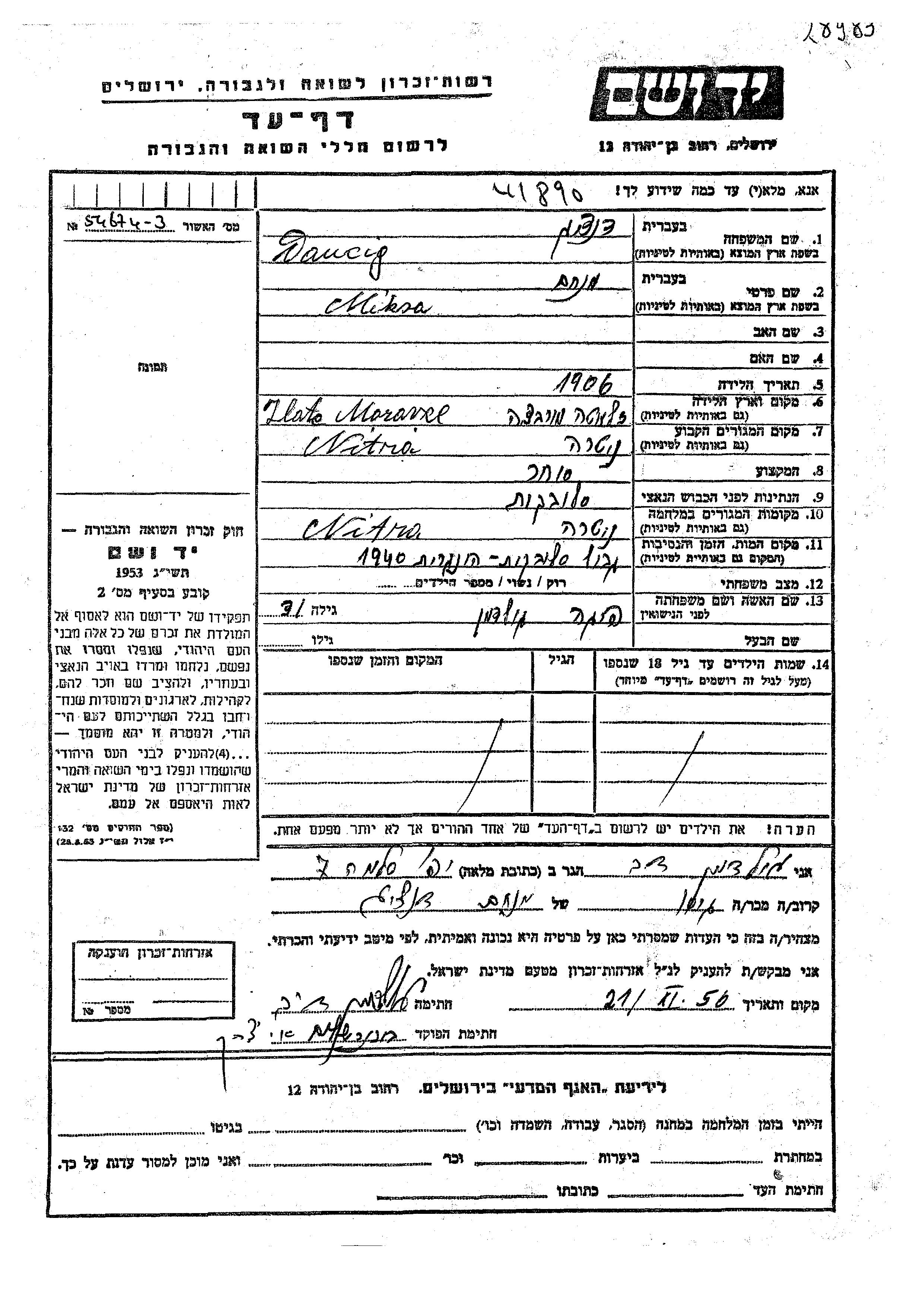 Dancig Miksa Menakhem 1906 Nitra, Czechoslovakia Page of Testimony