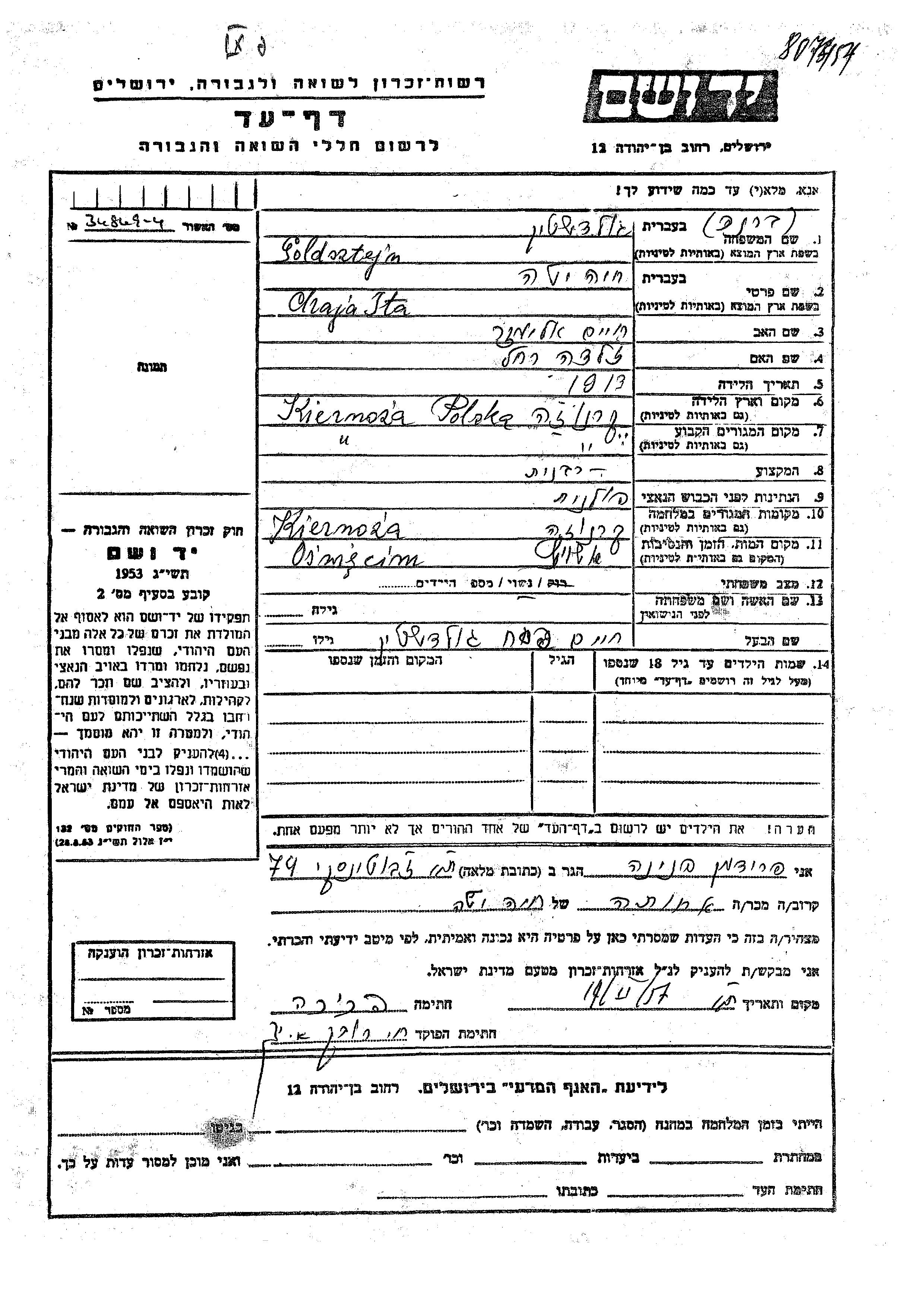 Chaja Yeta Goldsztejn was born in Kiernozia, Poland, 1913 to Khaim Eliezer and Zelda Rakhel. She was a rabbi's wife and married to Khaim Pesakh. Prior to WWII she lived in Kiernozia, Poland. During the war she was in Kiernozia, Poland. Chaja Yeta was murdered in the Shoah. Place of death: Auschwitz, Poland.