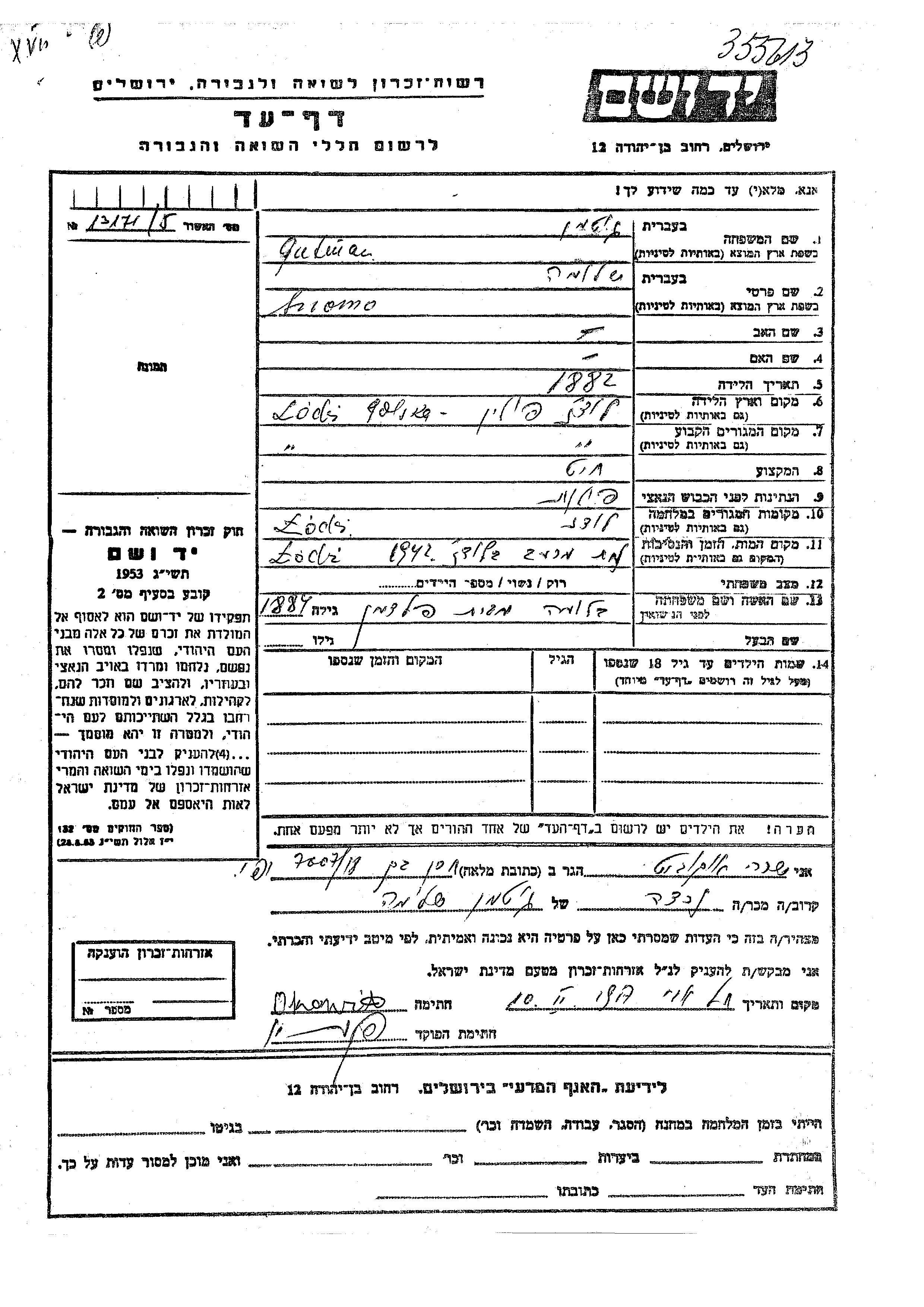 Yad Vashem - Pages of Testimony Names Memorial Collection