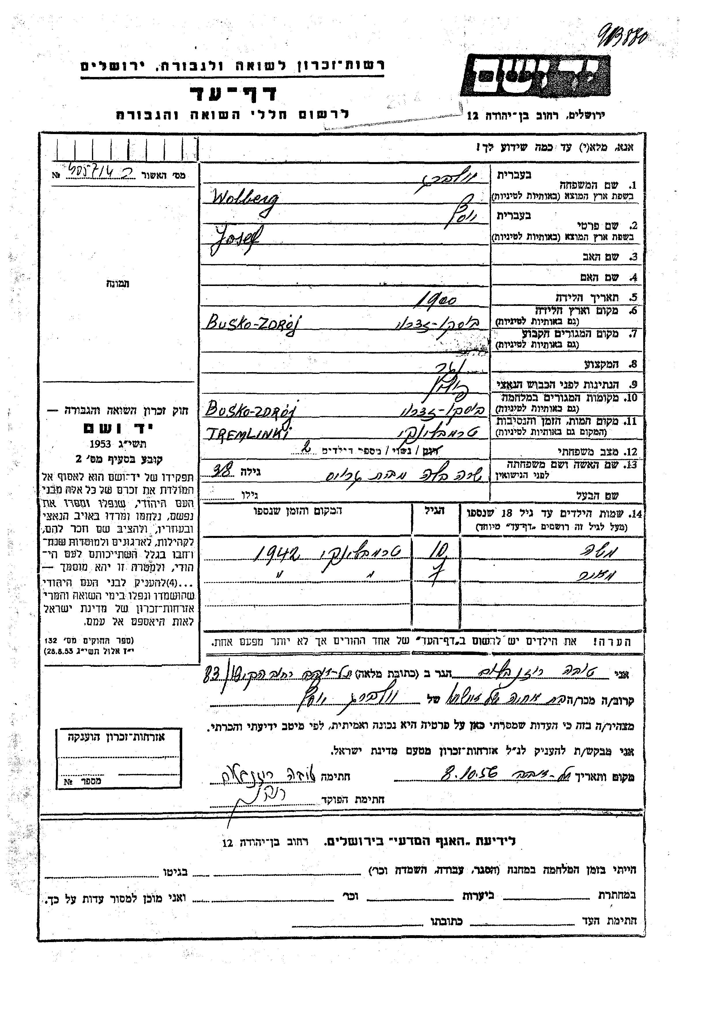 Search by name of Prewar permanent residence, Town, Village, District, Region or Country.