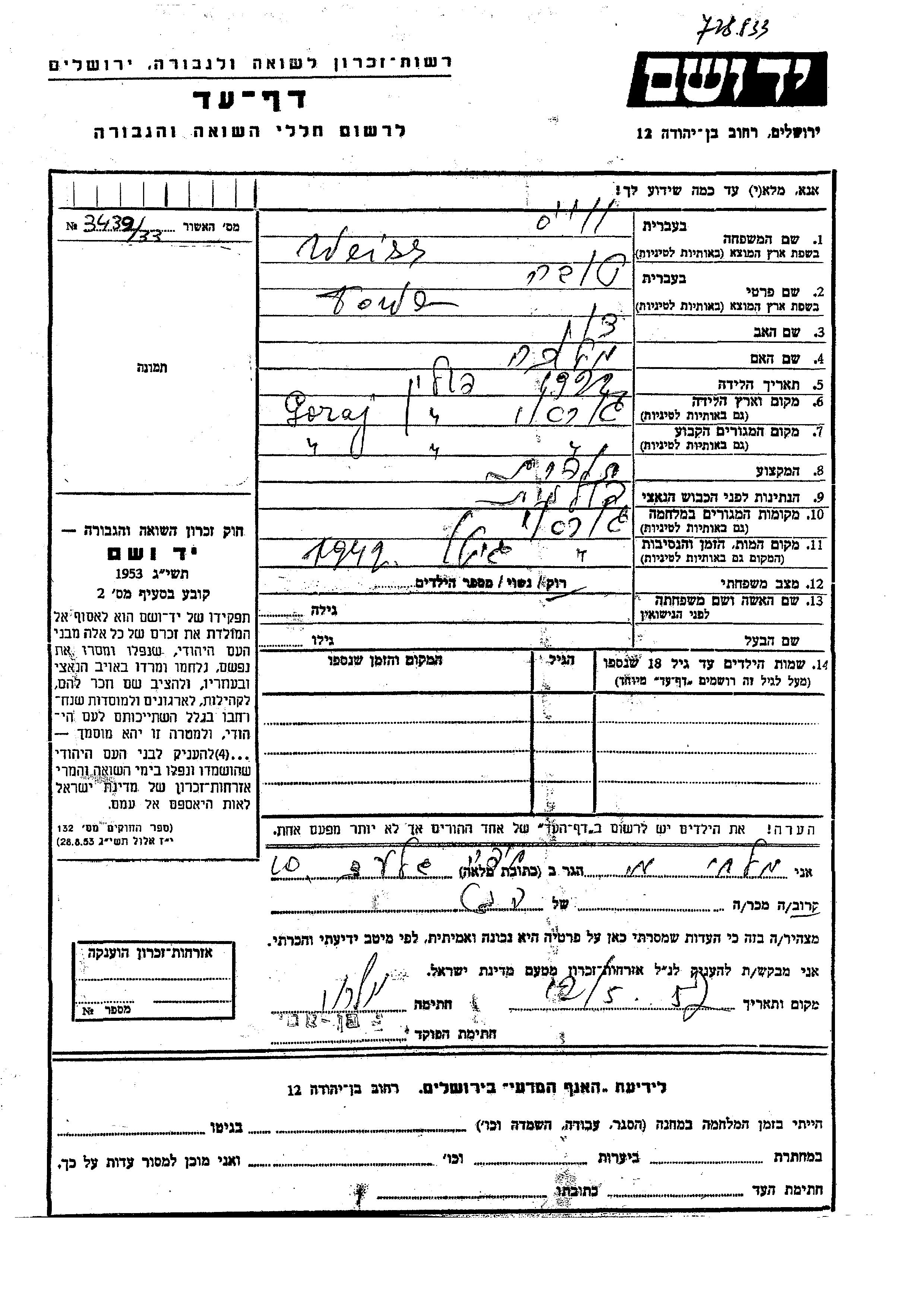 Yad Vashem - Pages of Testimony Names Memorial Collection