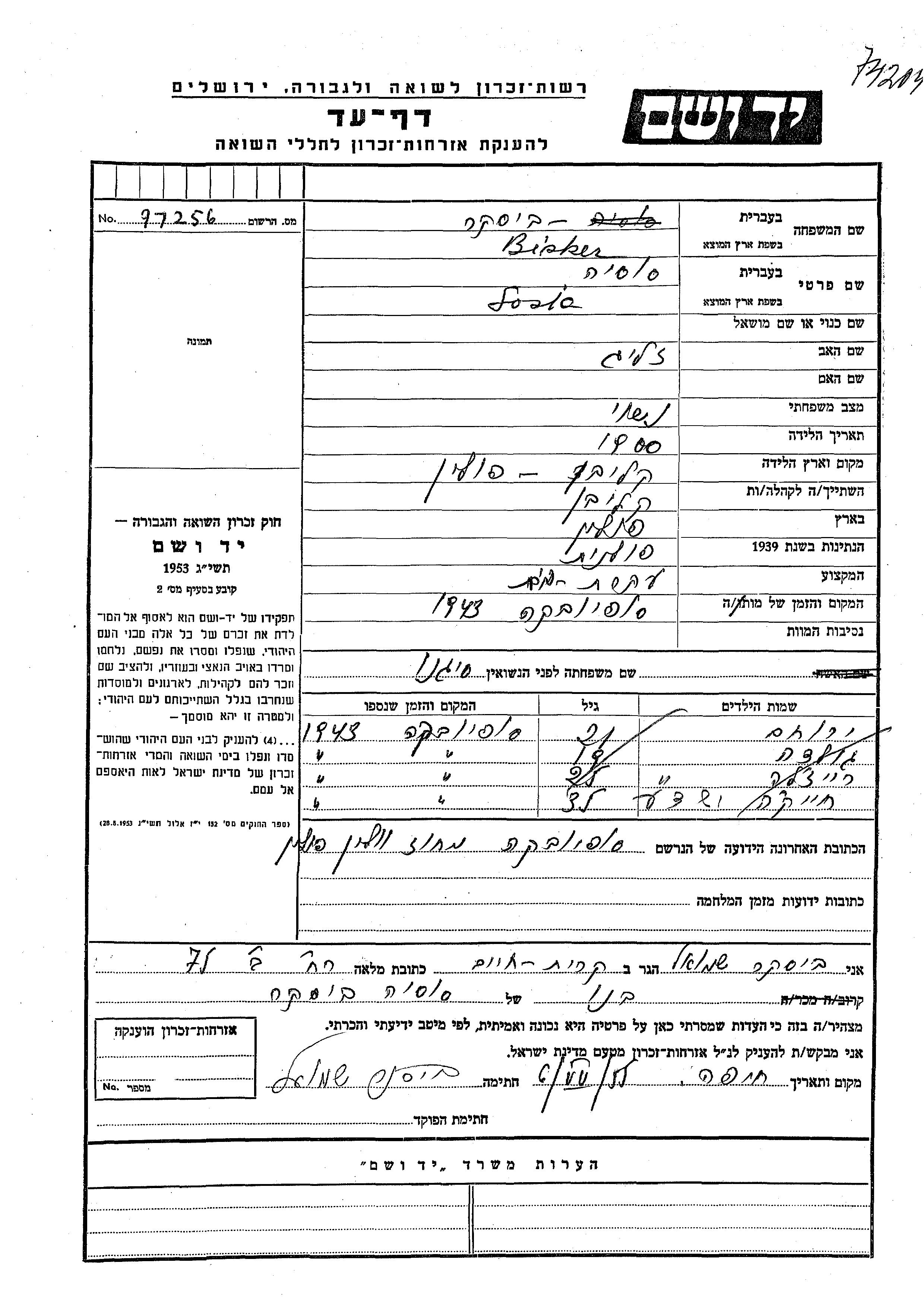 Yad Vashem - Pages of Testimony Names Memorial Collection