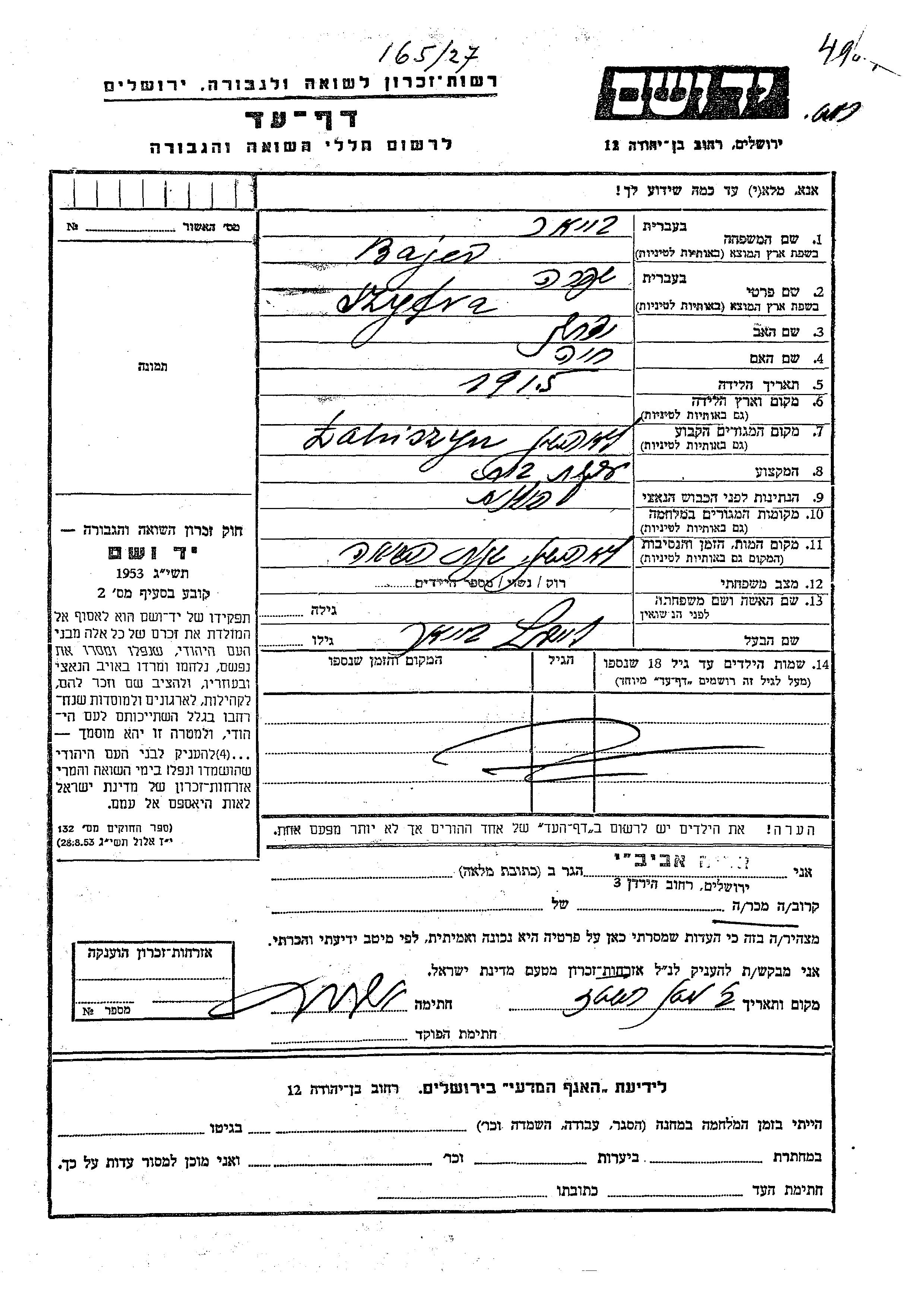 Szyfra Bajer was born, 1915 to Yitzkhak and Khaia. She was a housewife and married to Leibel. Prior to WWII she lived in Lahiszyn, Poland. During the war she was in Lahiszyn, Poland. Szyfra was murdered in the Shoah.