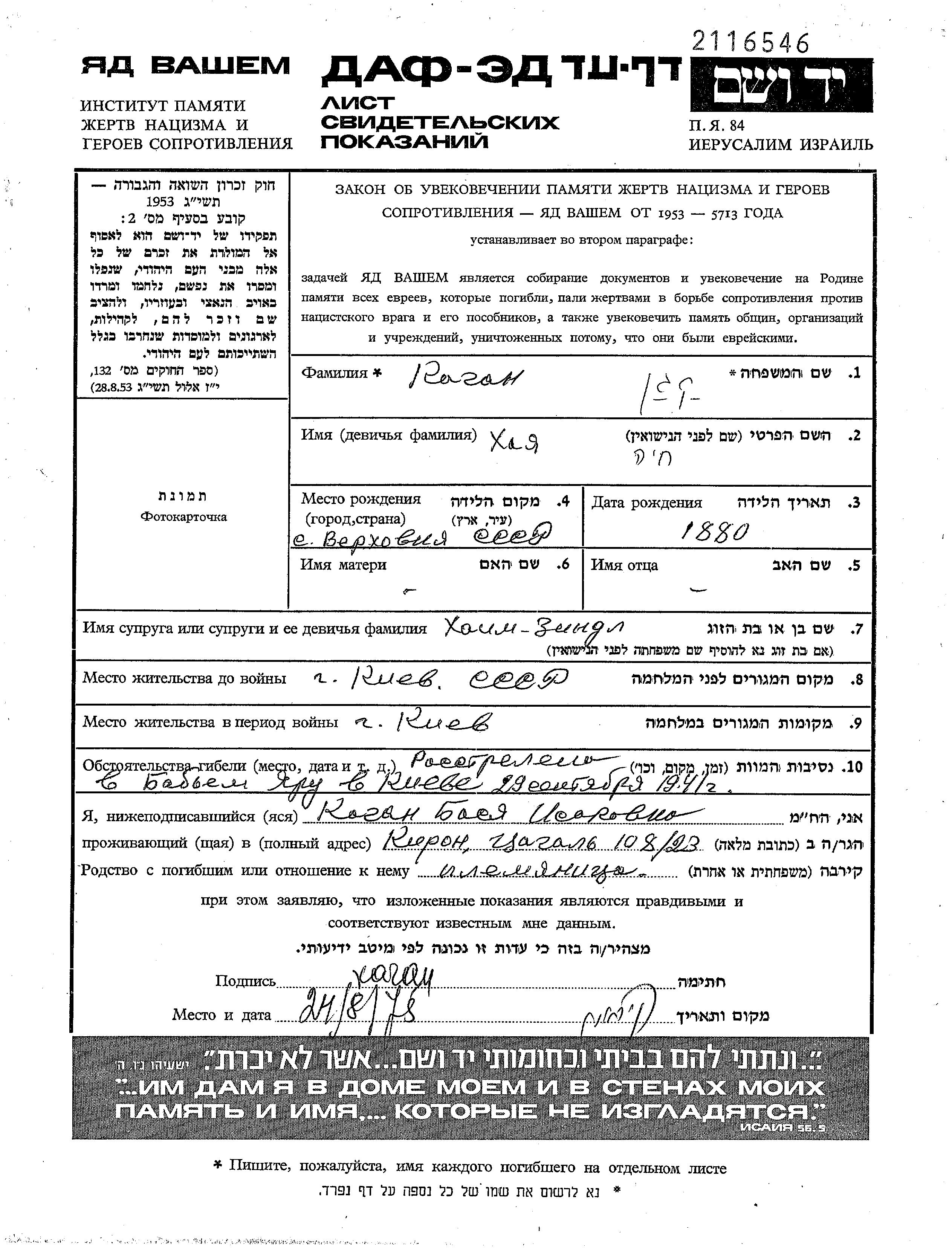 Yad Vashem - Pages of Testimony Names Memorial Collection