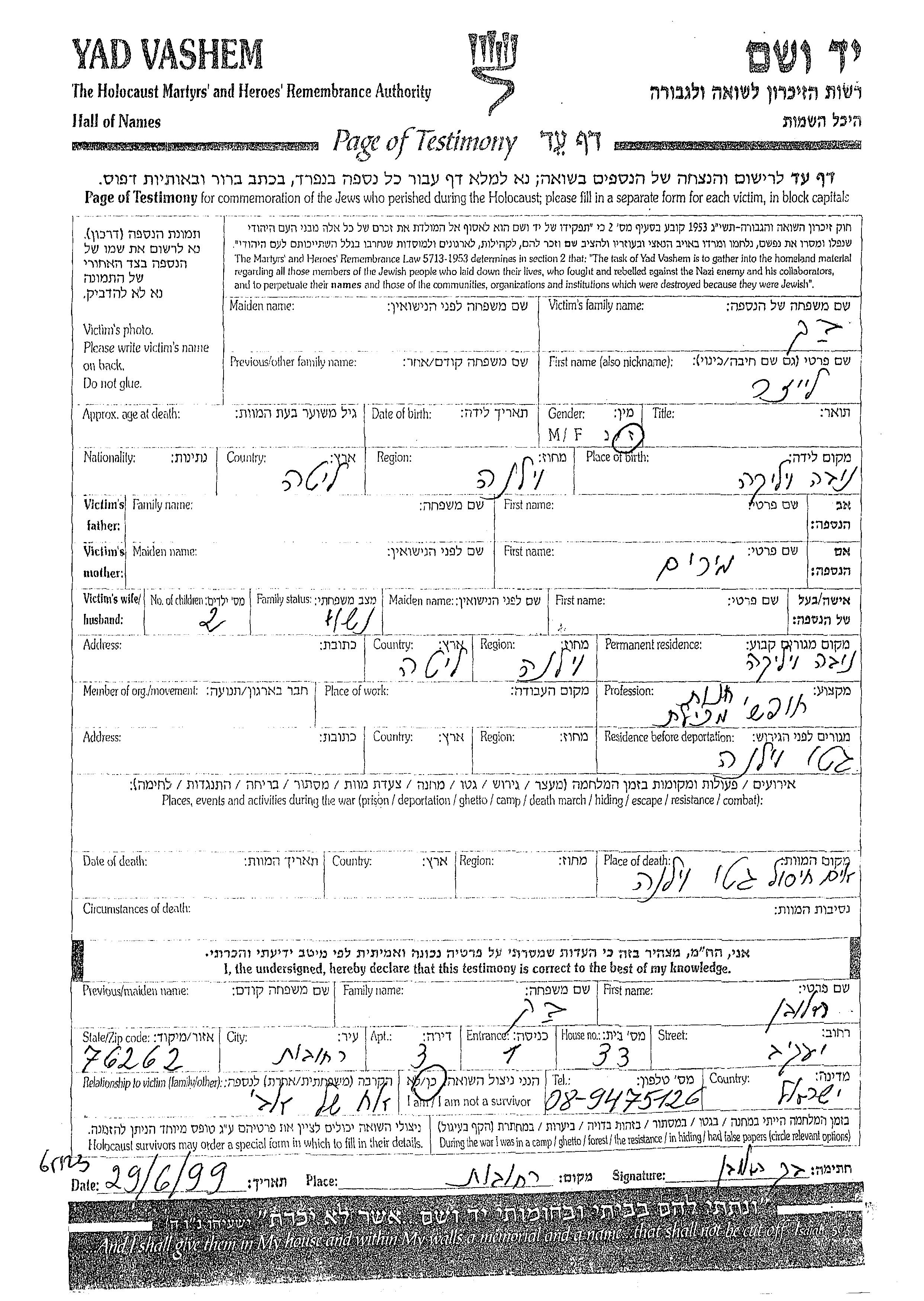 Leizer Bek was born in Nowa Wilejka, Poland to Miriam. He was married. Prior to WWII he lived in Nowa Wilejka, Poland. During the war he was in Wilno, Poland. Leizer was murdered in the Shoah. Place of death: Wilno, Poland.