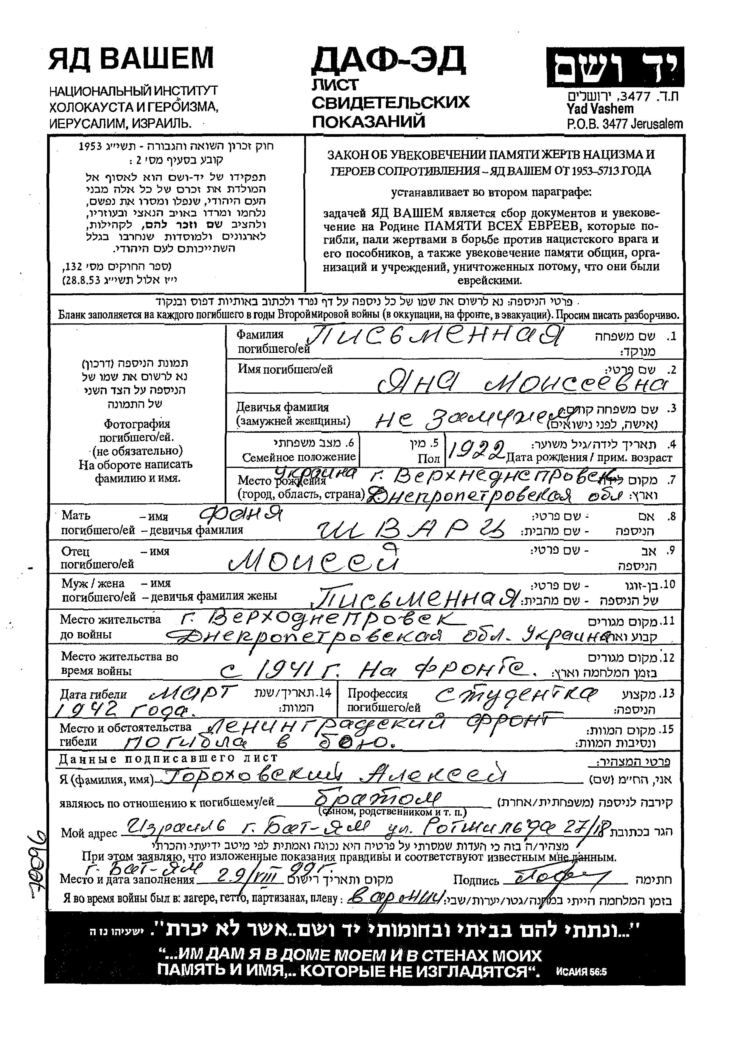 Search by last name of the submitter of the Page of Testimony, including diminutives or nicknames