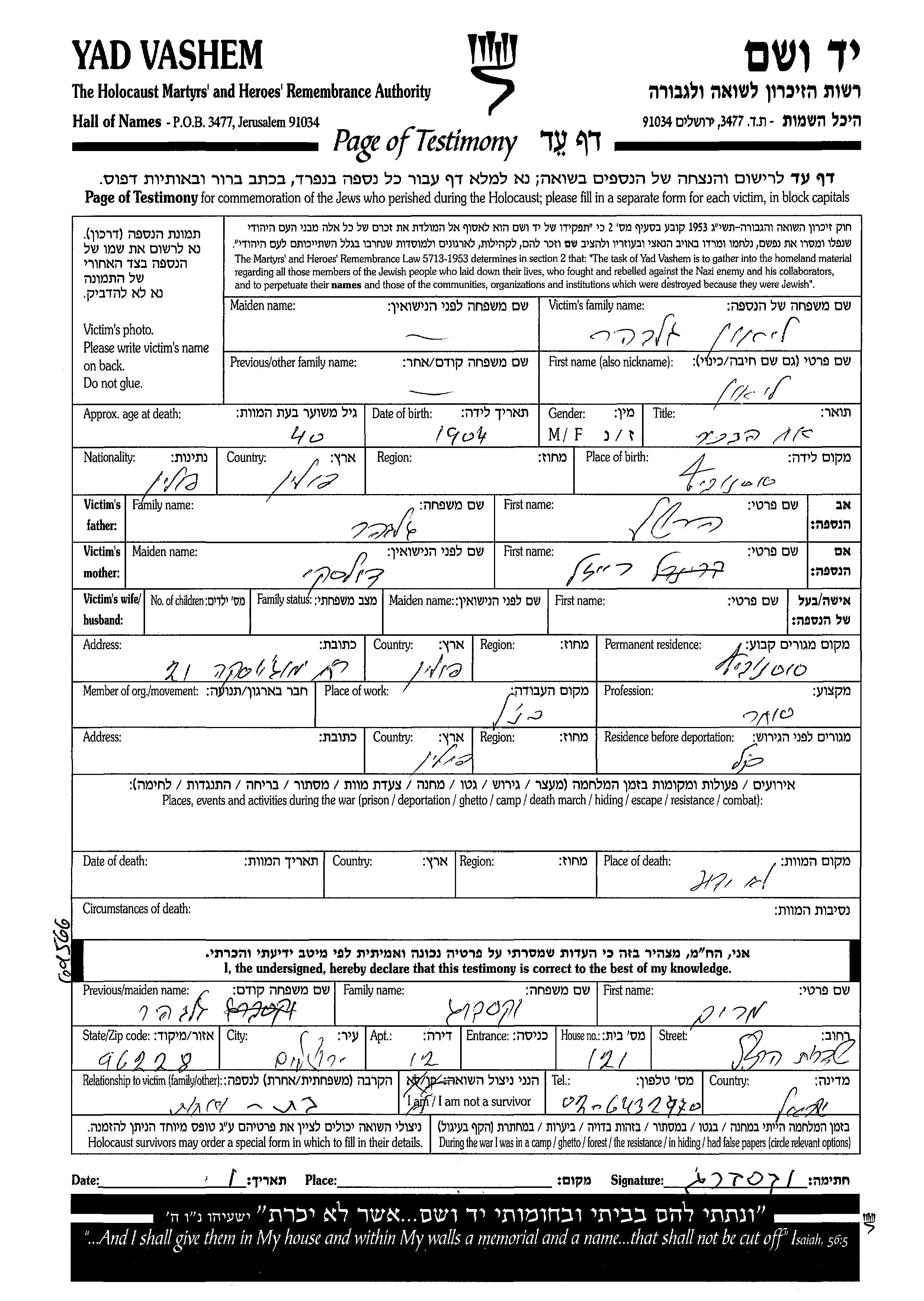 Lion Gelbhar was born in Sosnowiec, Poland, 1904 to Hershel and Reizl. He was a merchant. Prior to WWII he lived in Sosnowiec, Poland. During the war he was in Sosnowiec, Poland. Lion was murdered in the Shoah.