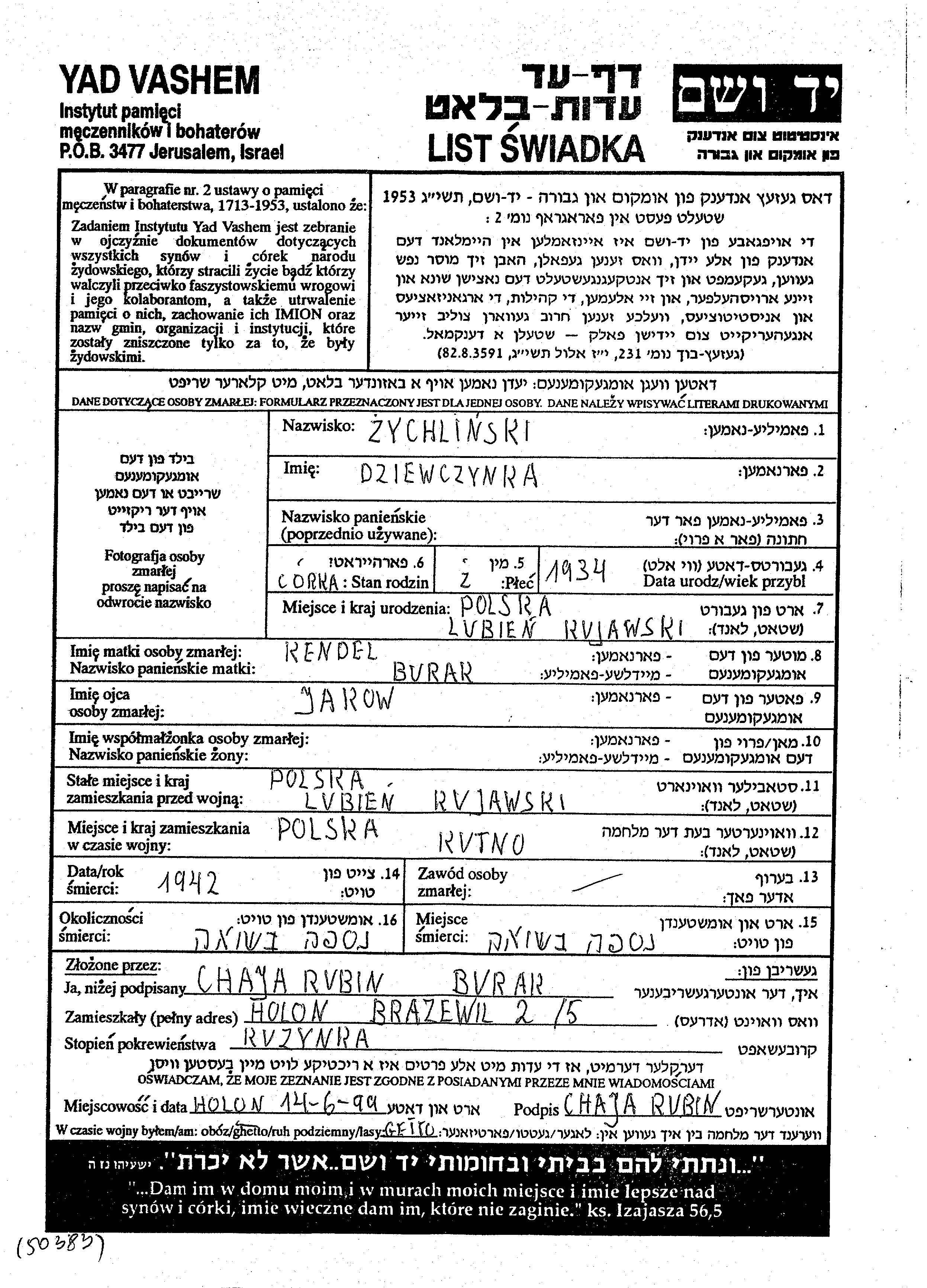 Zychlinski First name unknown 1934 Lubien Kujawski, Poland Page of Testimony