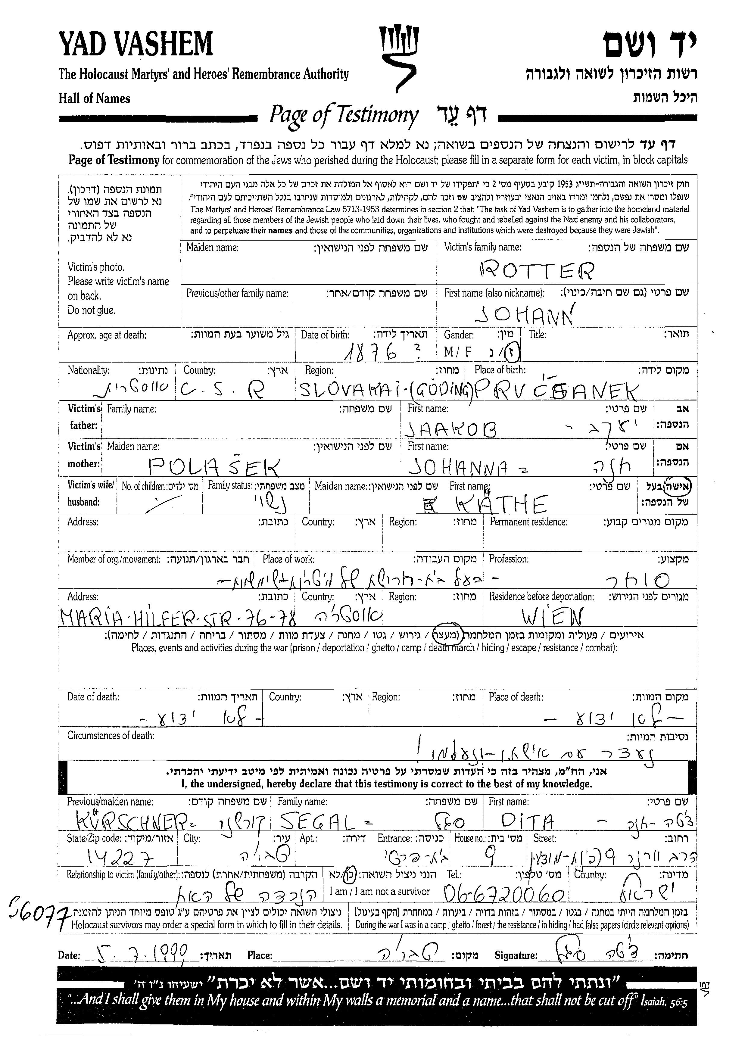 Yad Vashem - Pages of Testimony Names Memorial Collection