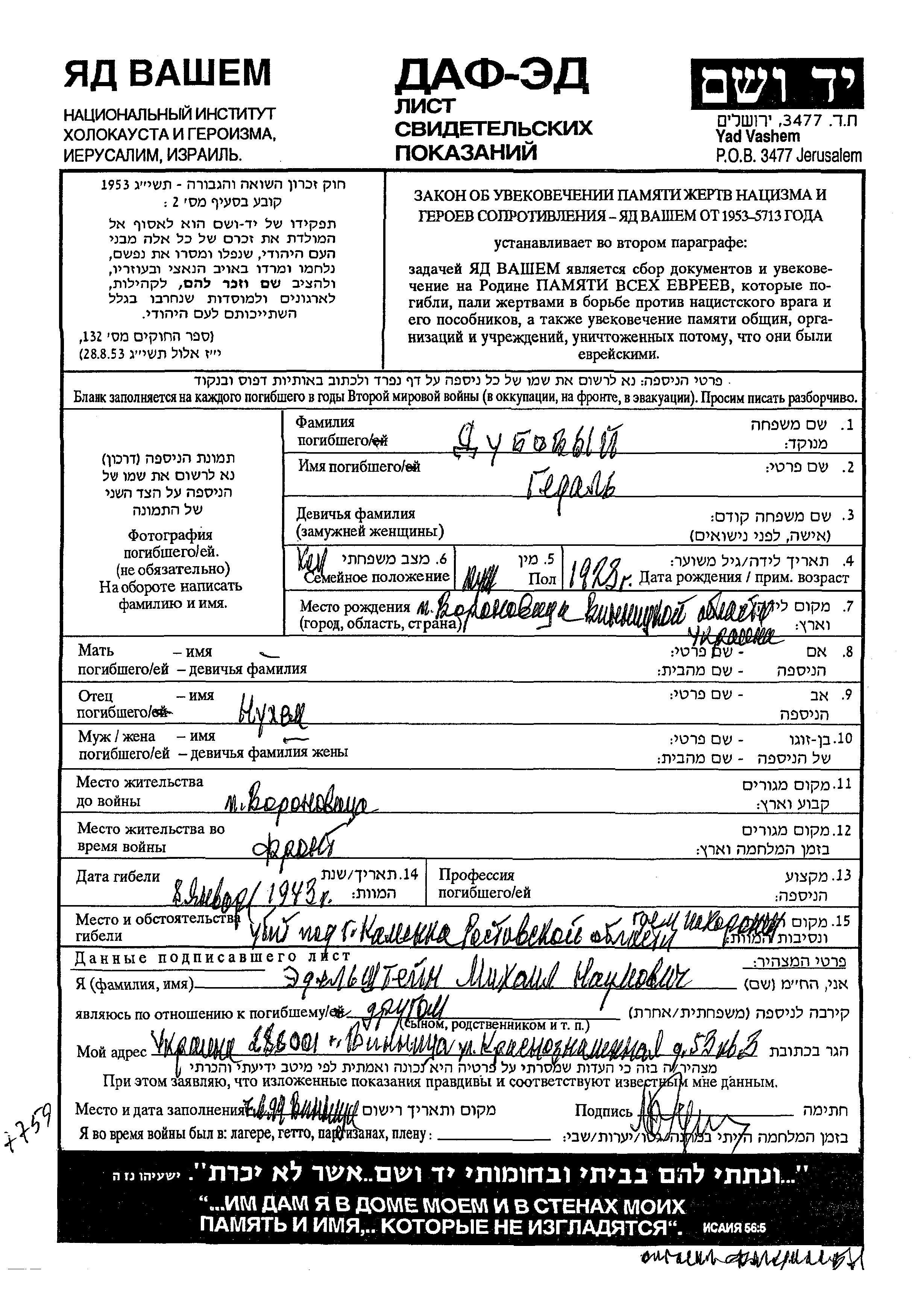 Search by last name of the submitter of the Page of Testimony, including diminutives or nicknames