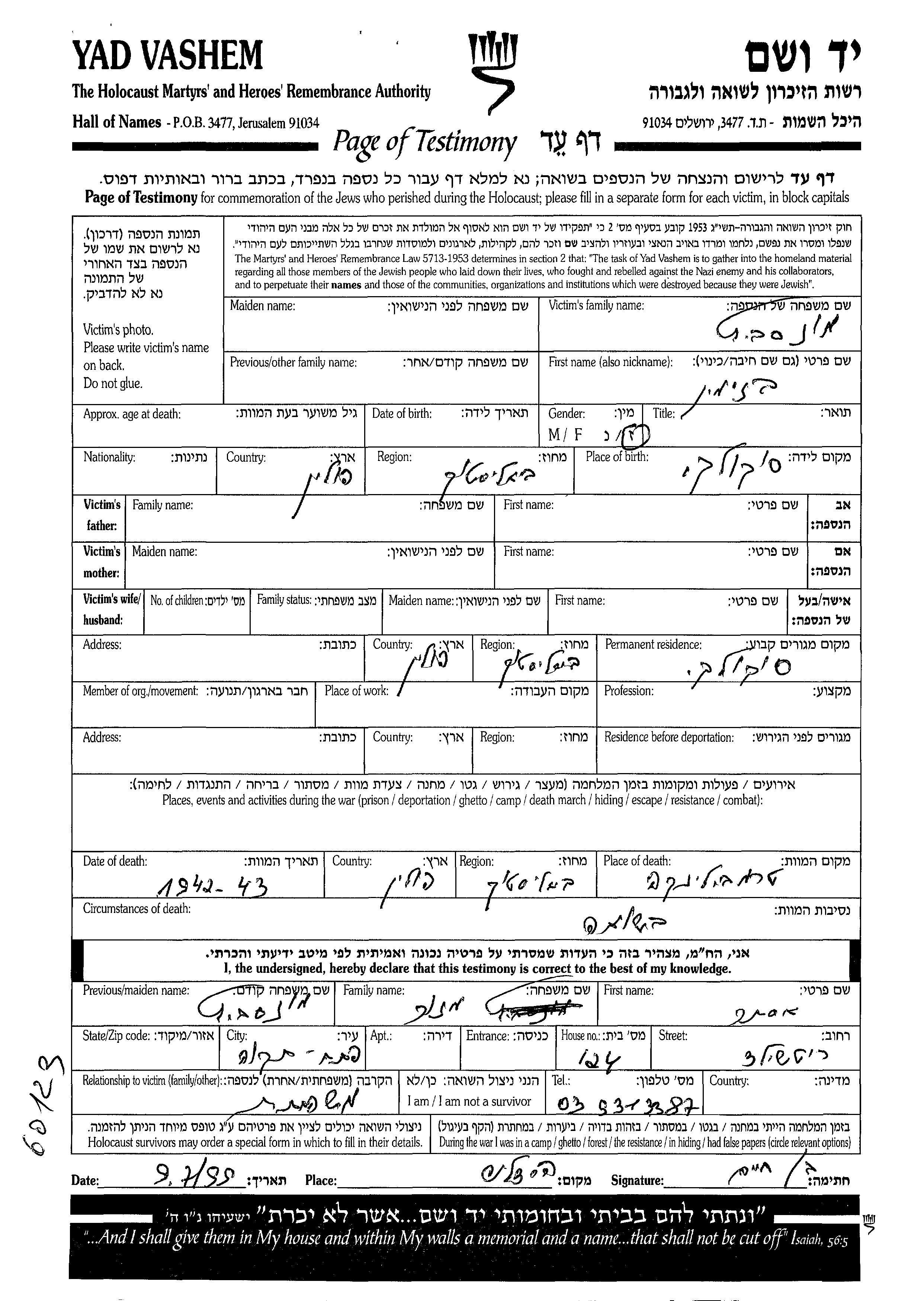 Yad Vashem - Pages of Testimony Names Memorial Collection