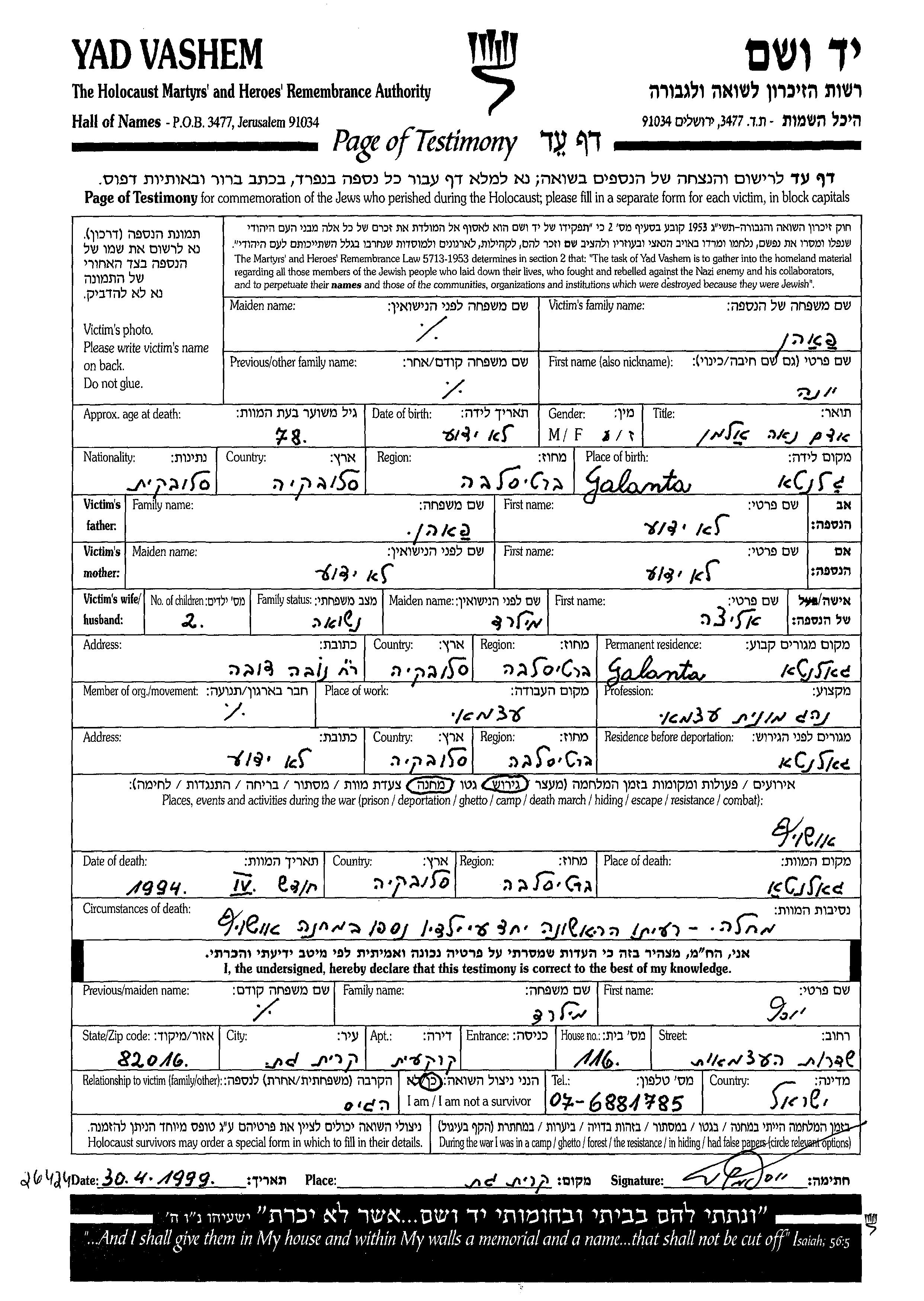 Yona Fan was born in Galanta, Czechoslovakia. He was a taxi driver. Prior to WWII he lived in Galanta, Czechoslovakia. During the war he was in Galanta, Czechoslovakia. Yona was murdered in the Shoah. Place of death: Auschwitz, Poland, 1944.