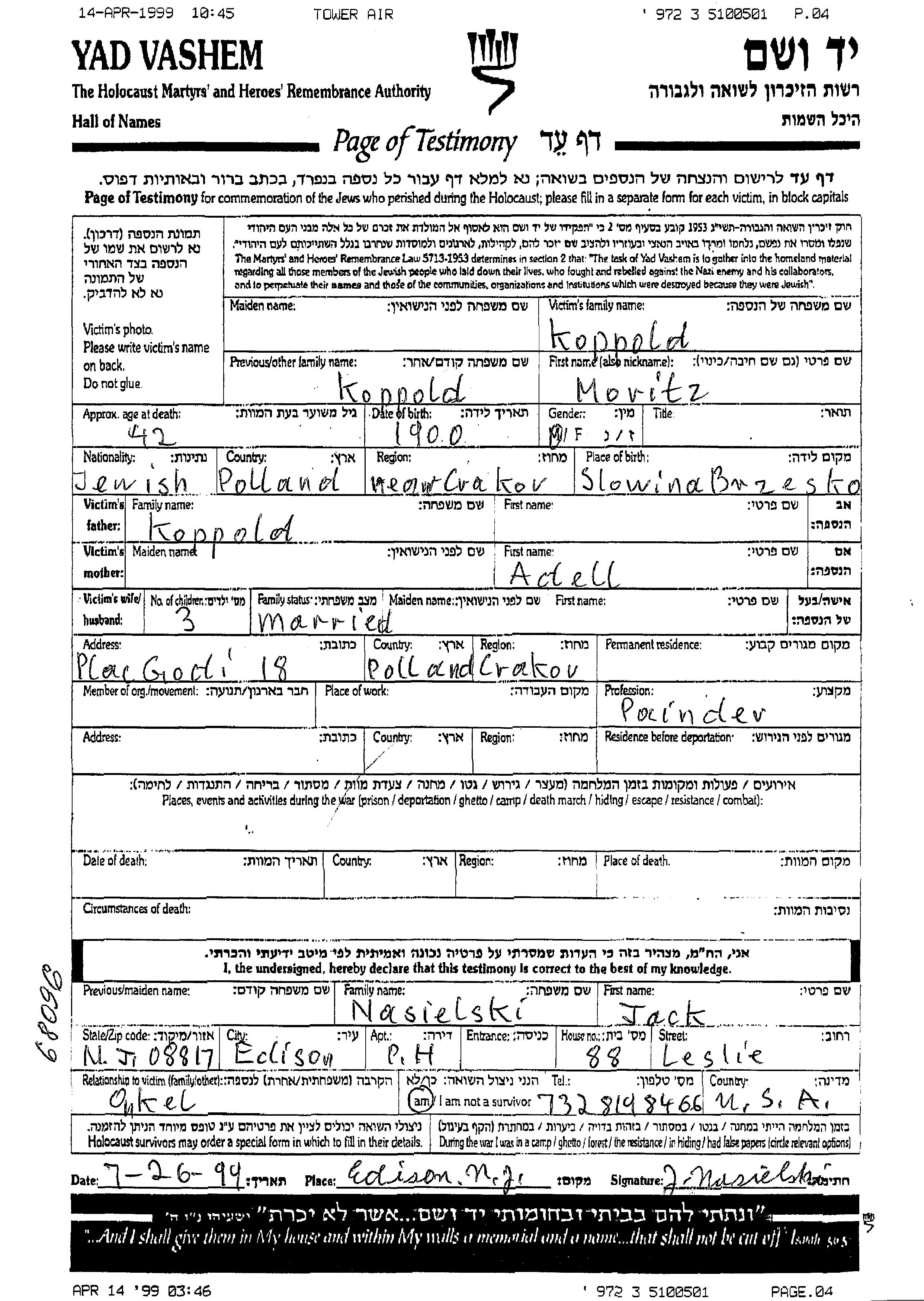 Search by last name of the submitter of the Page of Testimony, including diminutives or nicknames