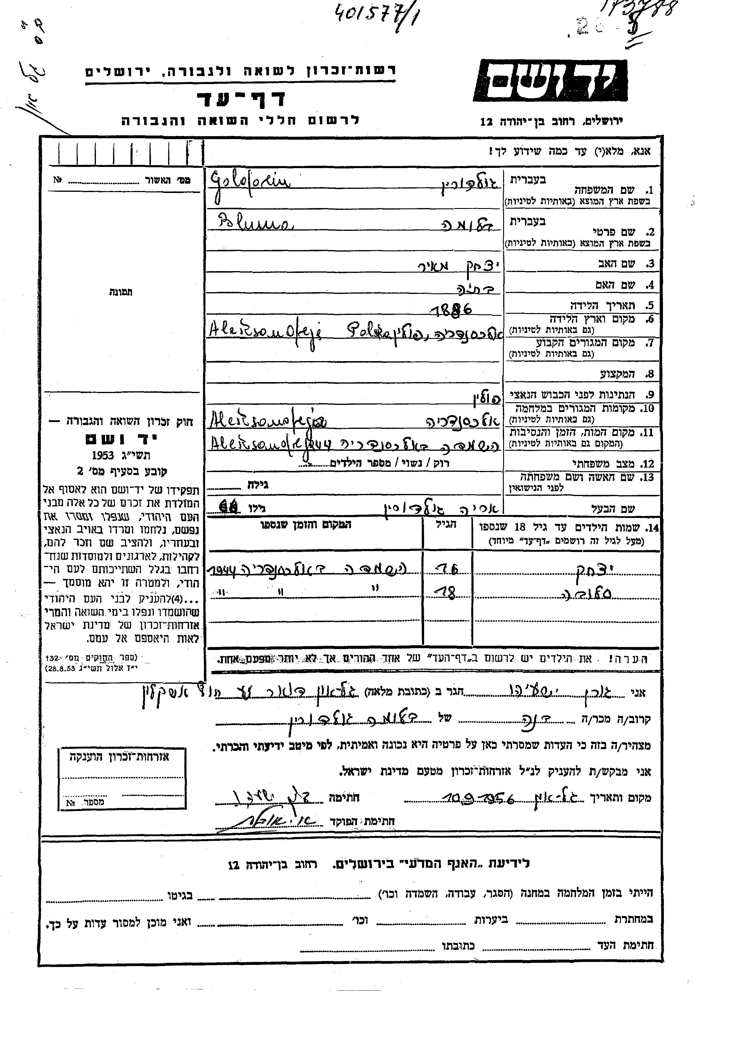 Yad Vashem - Pages of Testimony Names Memorial Collection