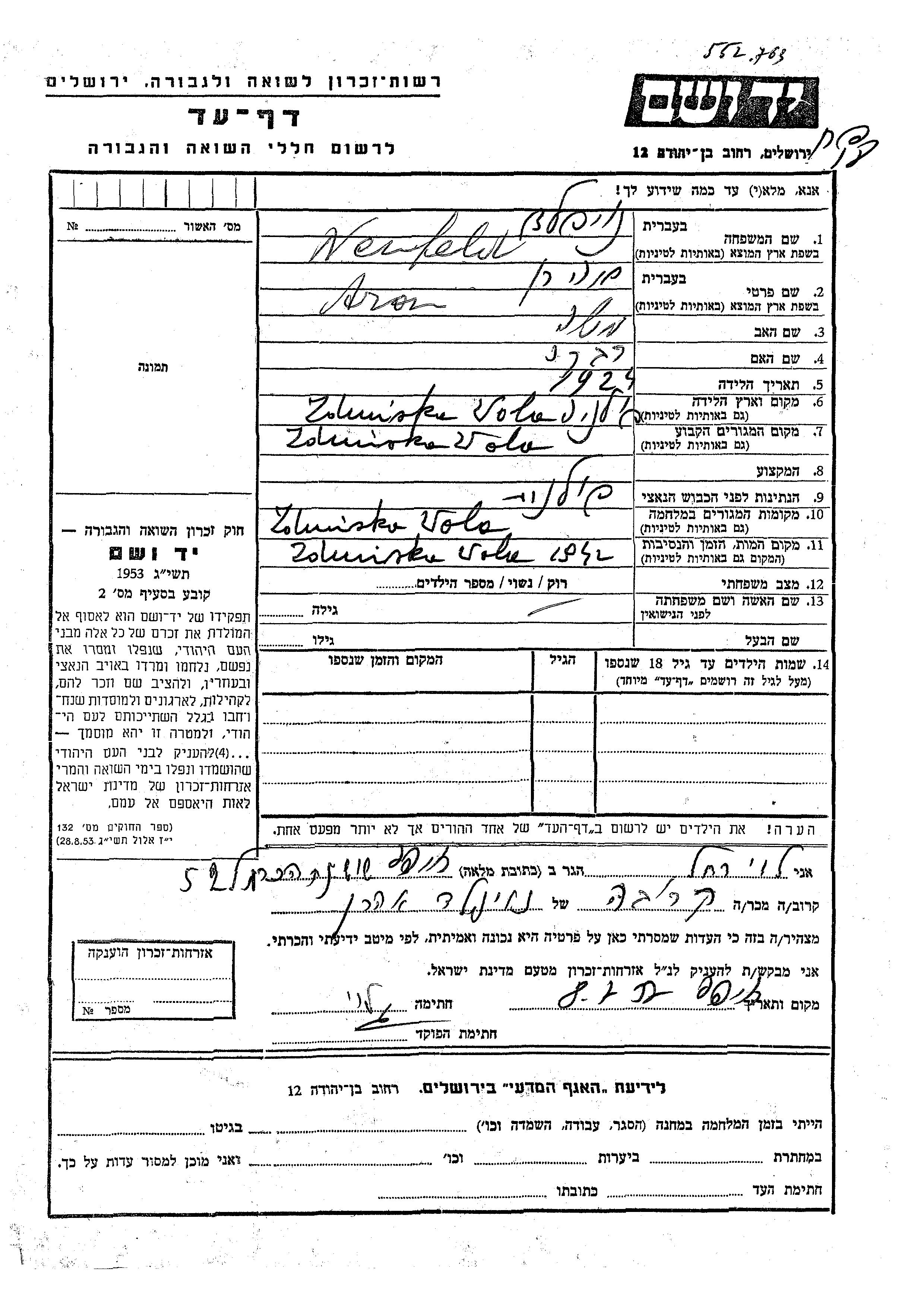 Yad Vashem - Pages of Testimony Names Memorial Collection