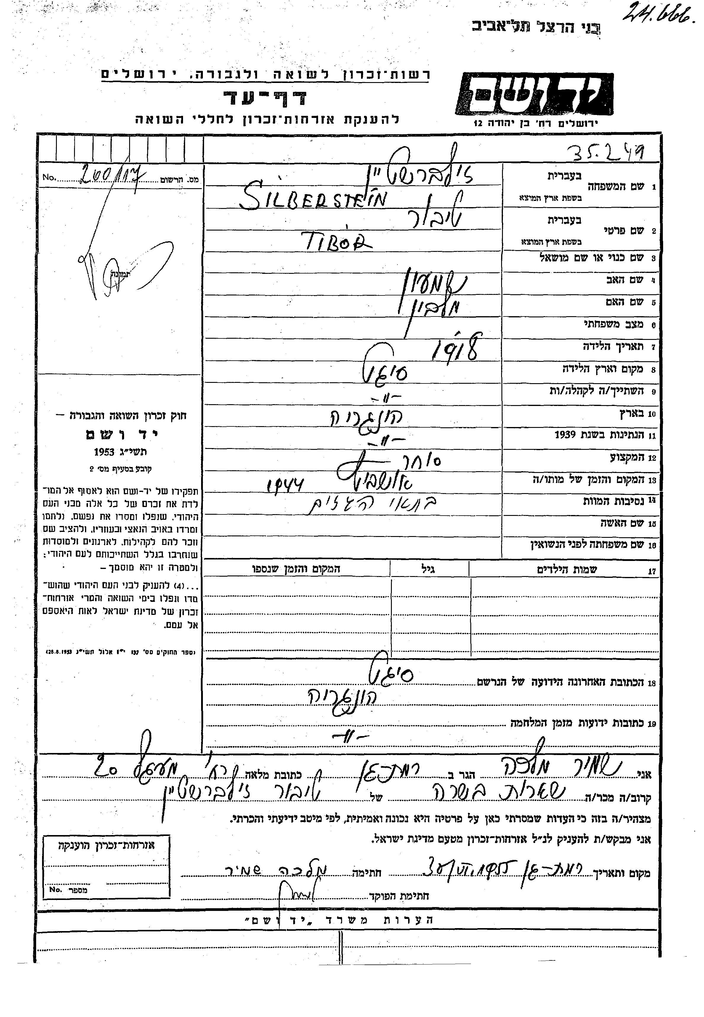 Silberstein Tibor 1918 Hungary Page of Testimony