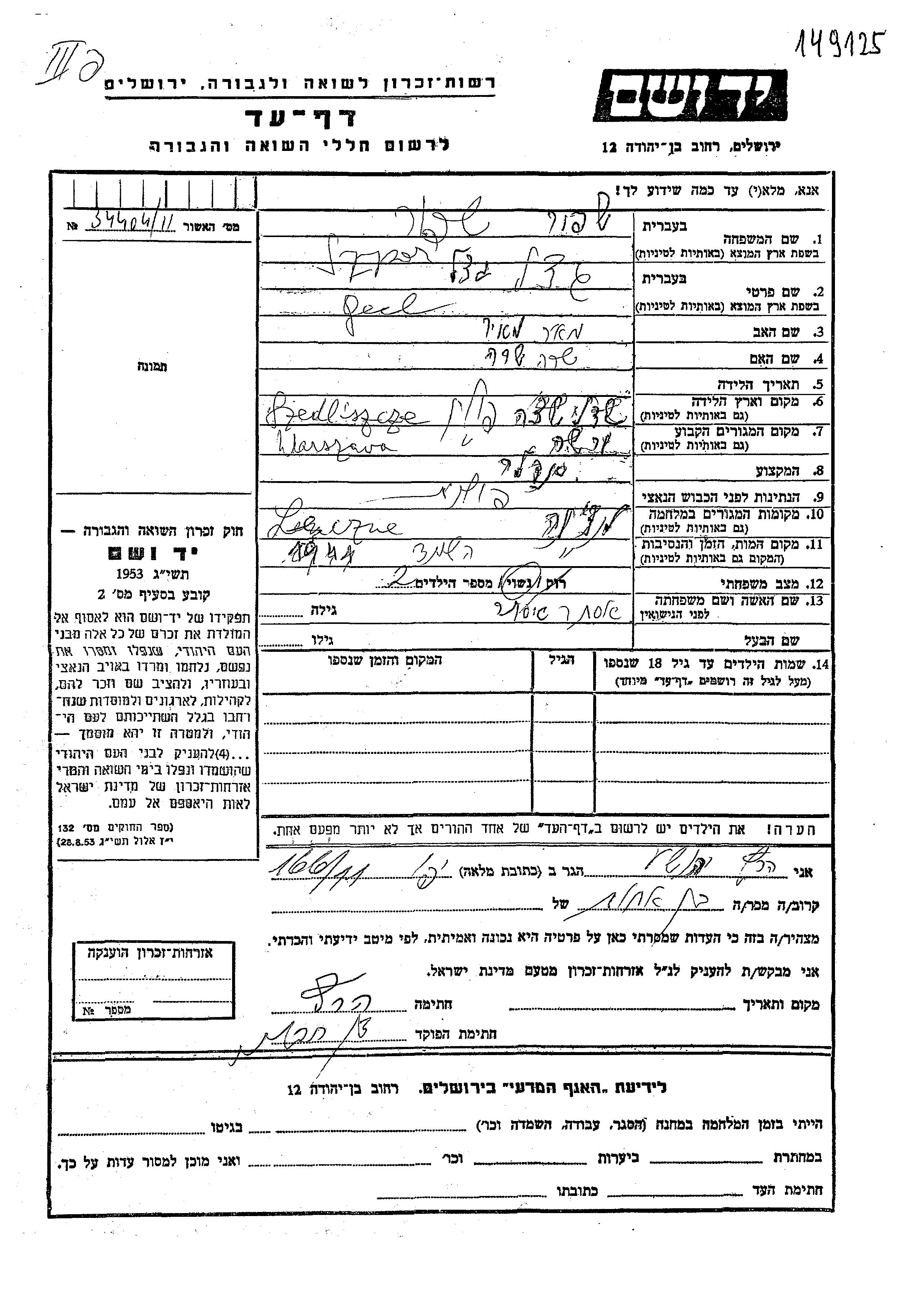 Yad Vashem - Pages of Testimony Names Memorial Collection