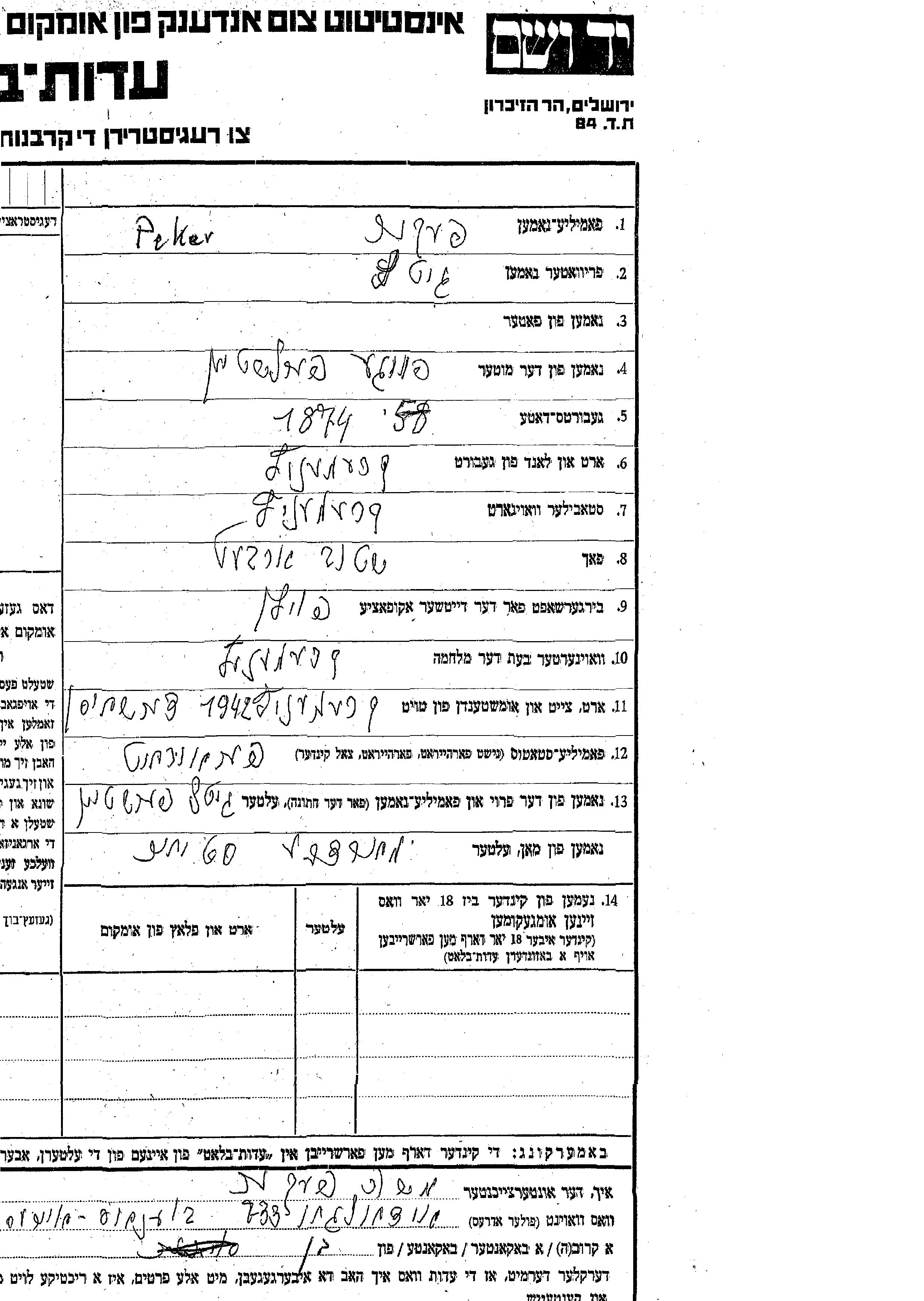 Paker Gitel 1874 Kremenits, Poland Page of Testimony