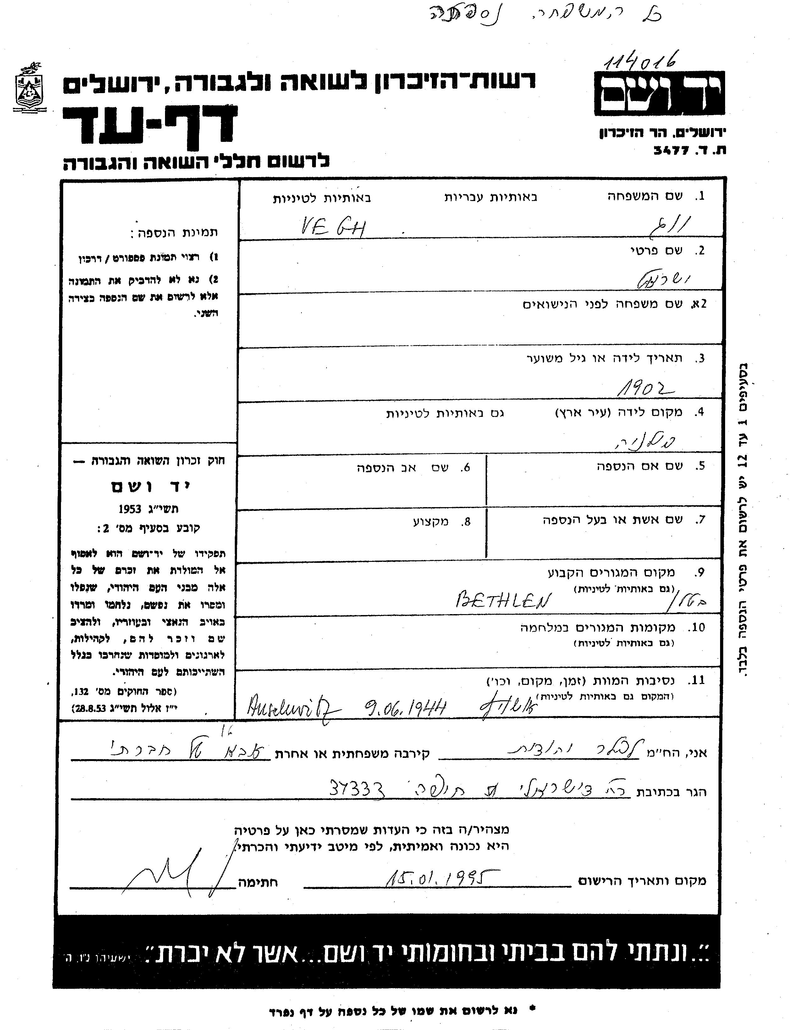 Yad Vashem - Pages of Testimony Names Memorial Collection