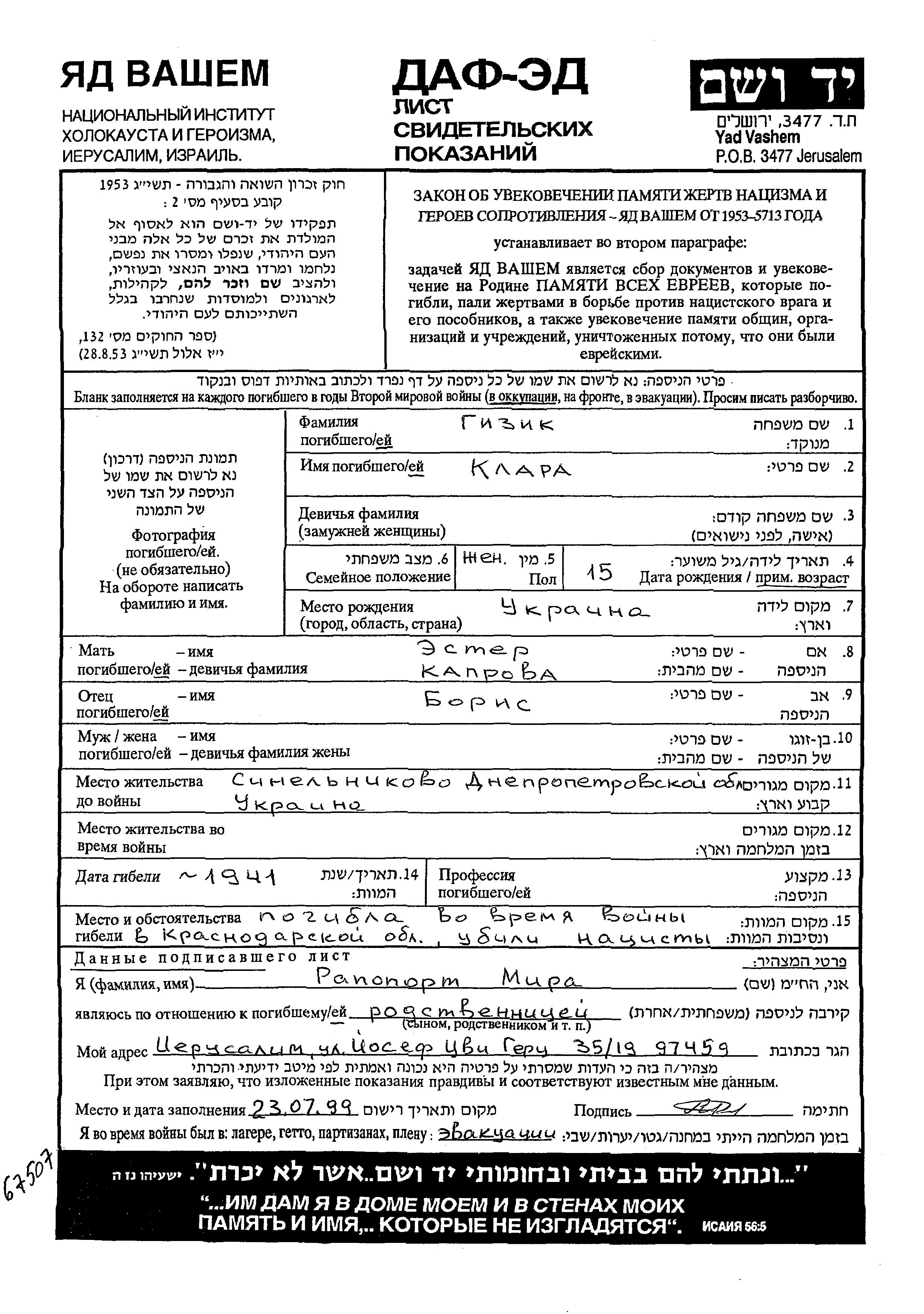 During the Shoah, Jews were murdered in a variety of ways, among them gassing, shooting, burning, drowning or burial alive, exhaustion through forced labor, starvation, epidemic diseases, deprivation of medical care and minimal hygienic conditions, and more. Some Jews took their own lives in order to escape arrest and further persecution, or to end their hopeless, relentless suffering. Tens of thousands of Jewish soldiers serving in the Soviet army and captured as POWs were selected as Jews and murdered. Many were registered as “missing in action”.
