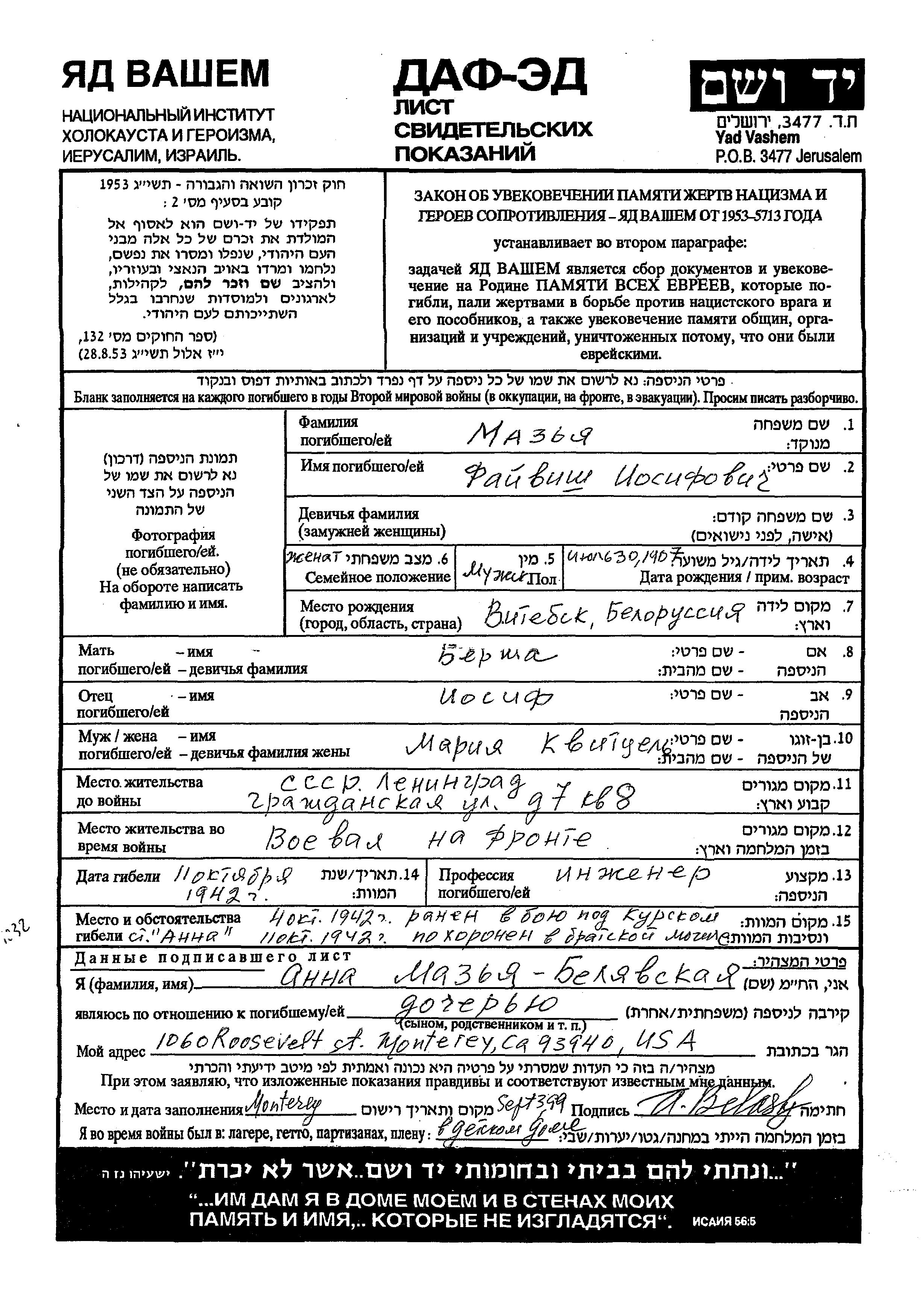 Search by last name of the submitter of the Page of Testimony, including diminutives or nicknames
