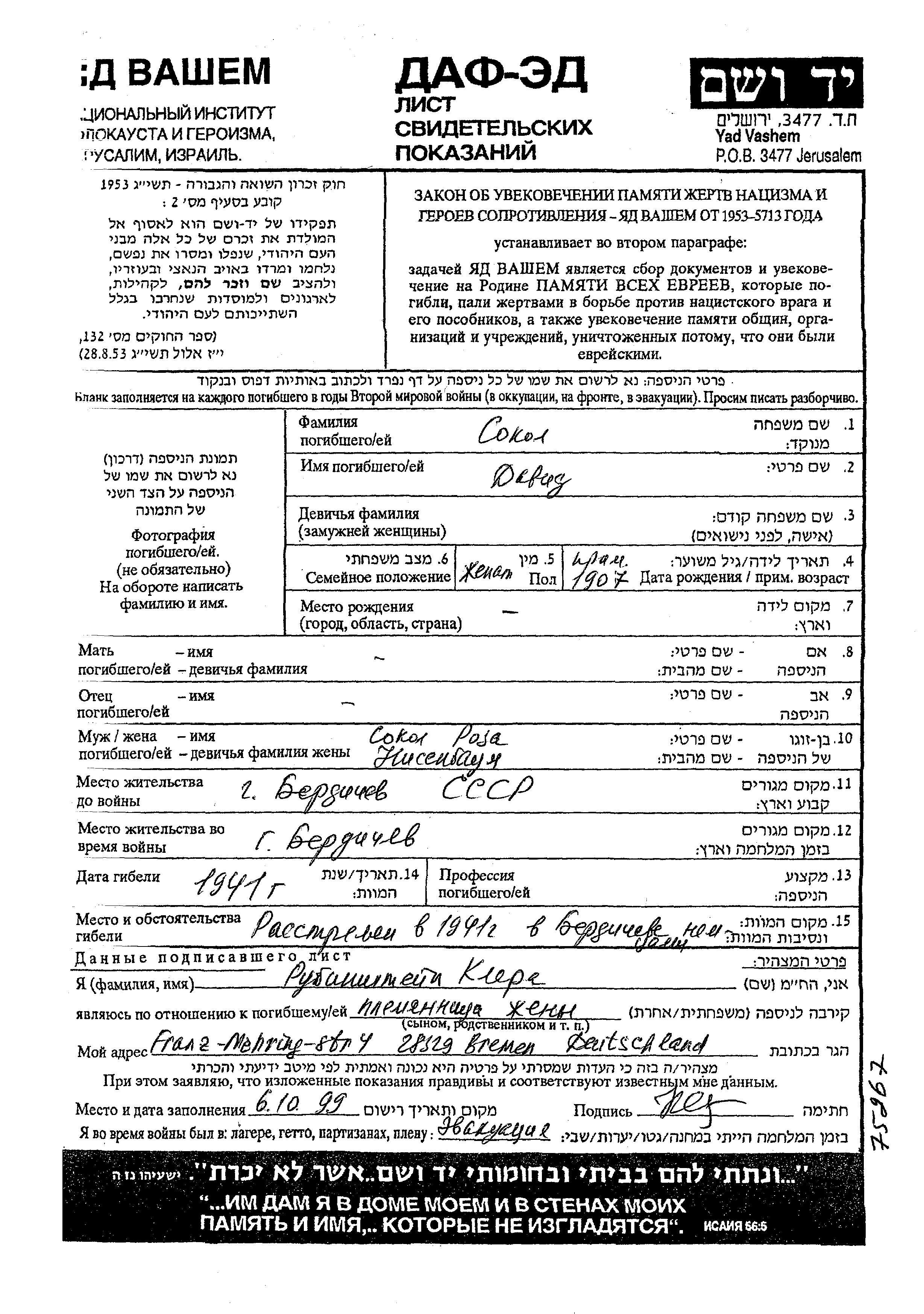 During the Shoah, Jews were murdered in a variety of ways, among them gassing, shooting, burning, drowning or burial alive, exhaustion through forced labor, starvation, epidemic diseases, deprivation of medical care and minimal hygienic conditions, and more. Some Jews took their own lives in order to escape arrest and further persecution, or to end their hopeless, relentless suffering.