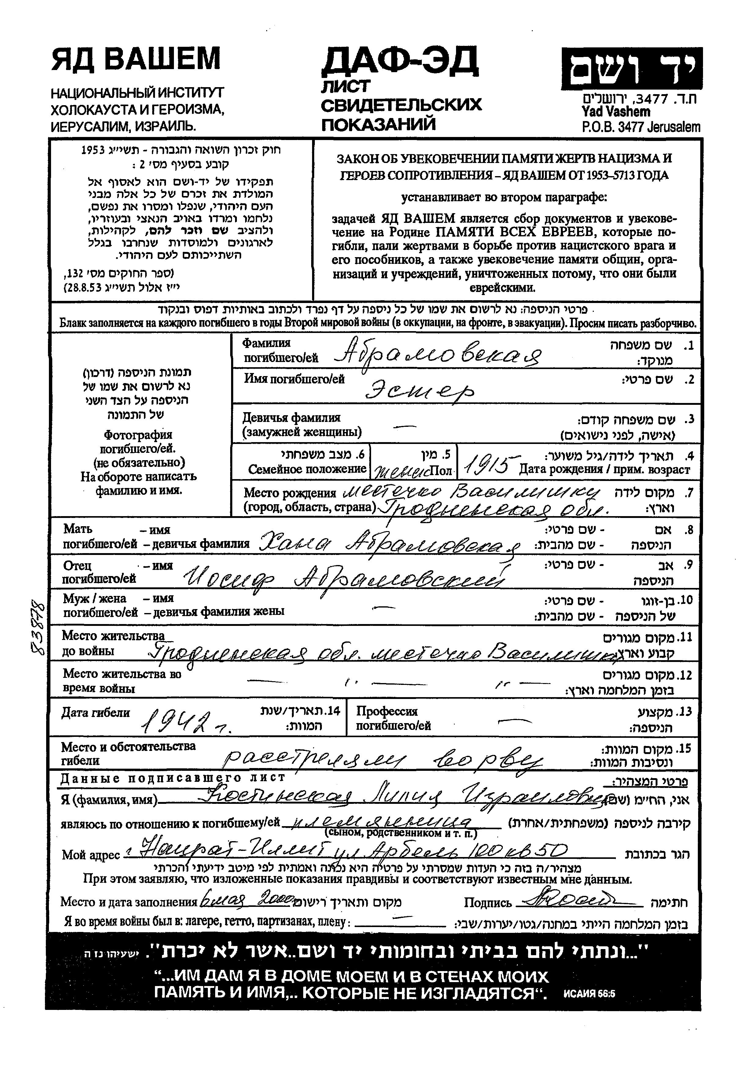 Yad Vashem - Pages of Testimony Names Memorial Collection