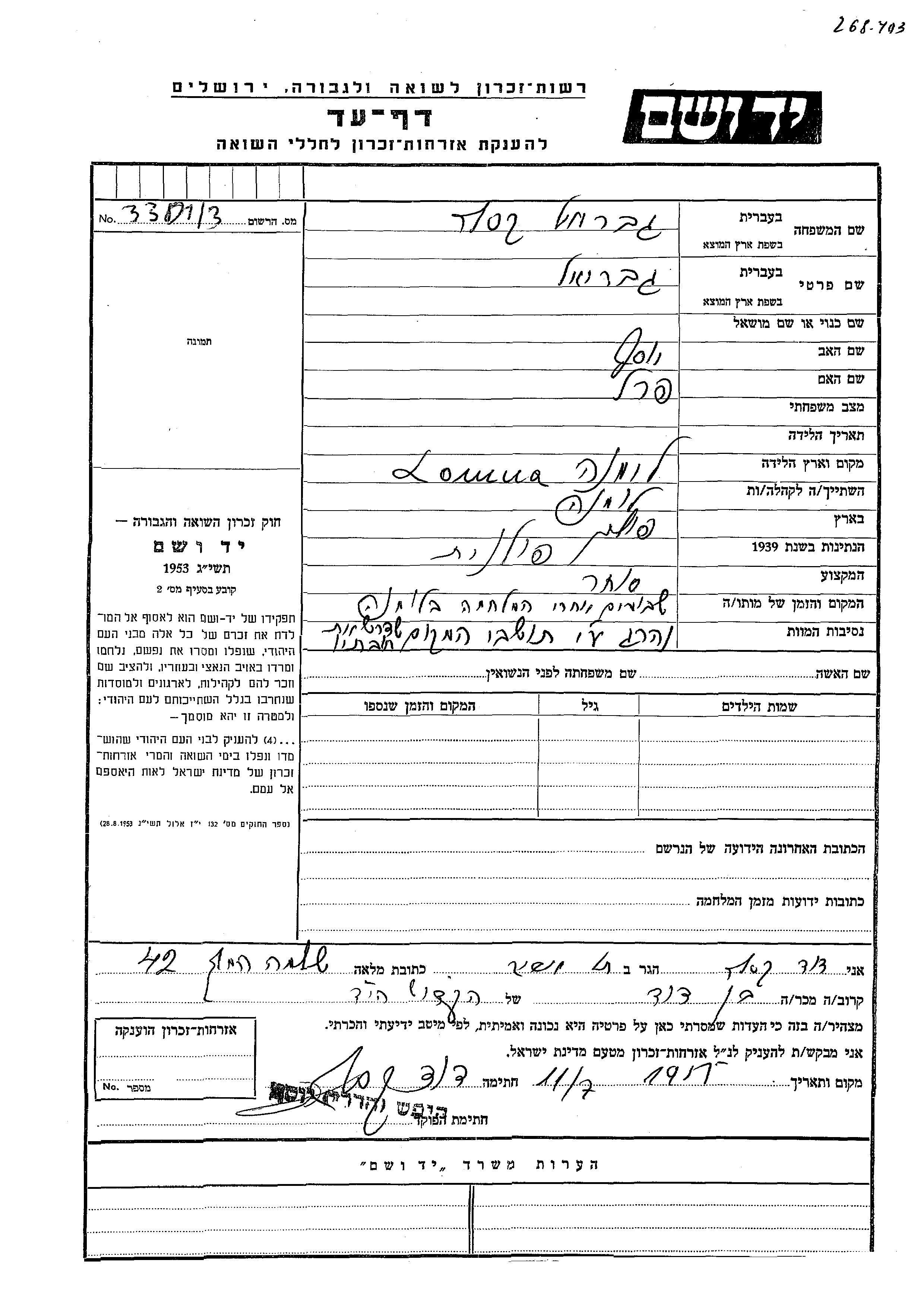 Yad Vashem - Pages of Testimony Names Memorial Collection