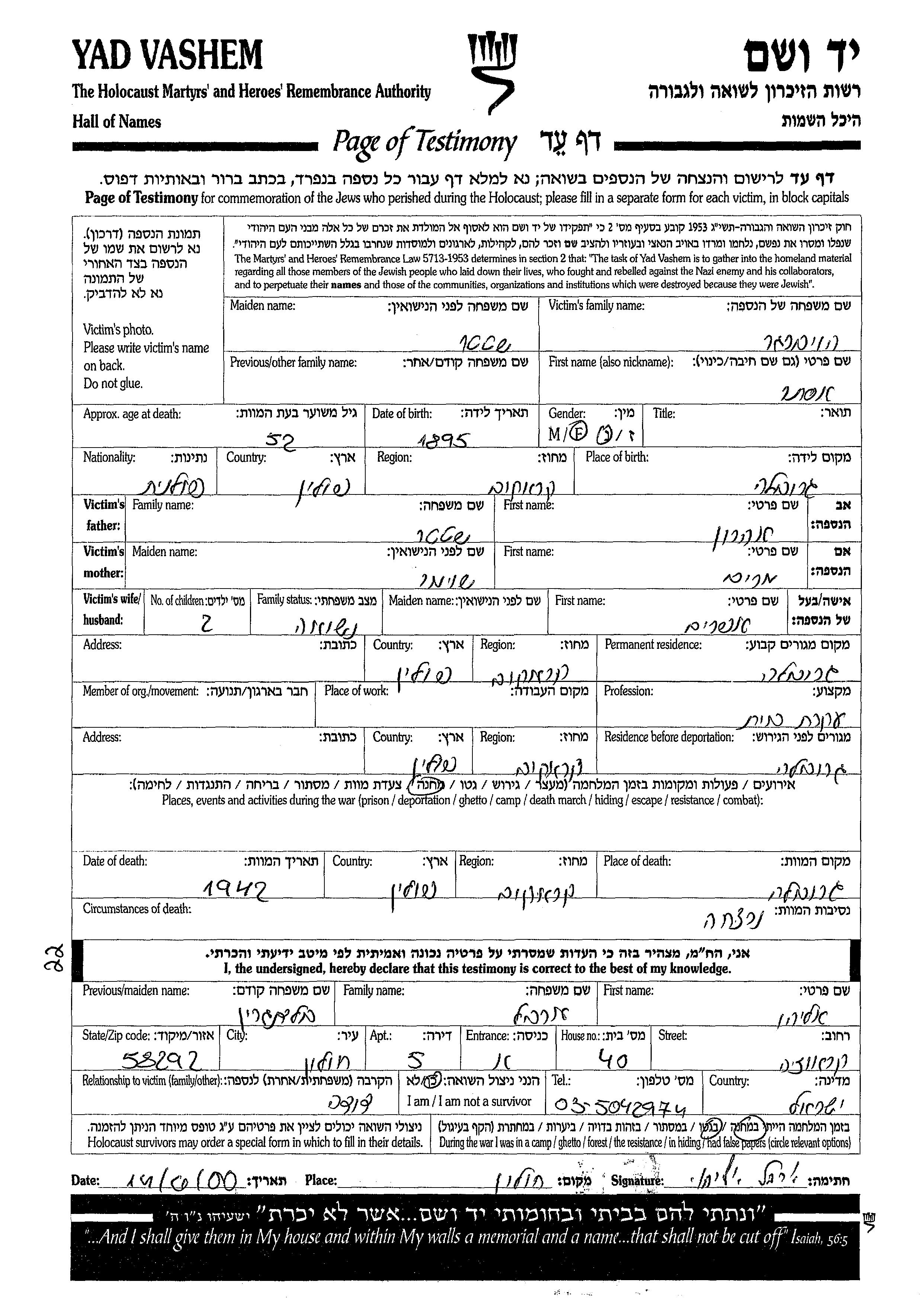 Ester Hoiberger nee Shtater was born in Grobla, Poland, 1895 to Aharon and Miriam. She was a housewife and married to Efraim. Prior to WWII she lived in Grobla, Poland. During the war she was in Grobla, Poland. Ester was murdered in the Shoah. Place of death: Grobla, Poland, 1942.