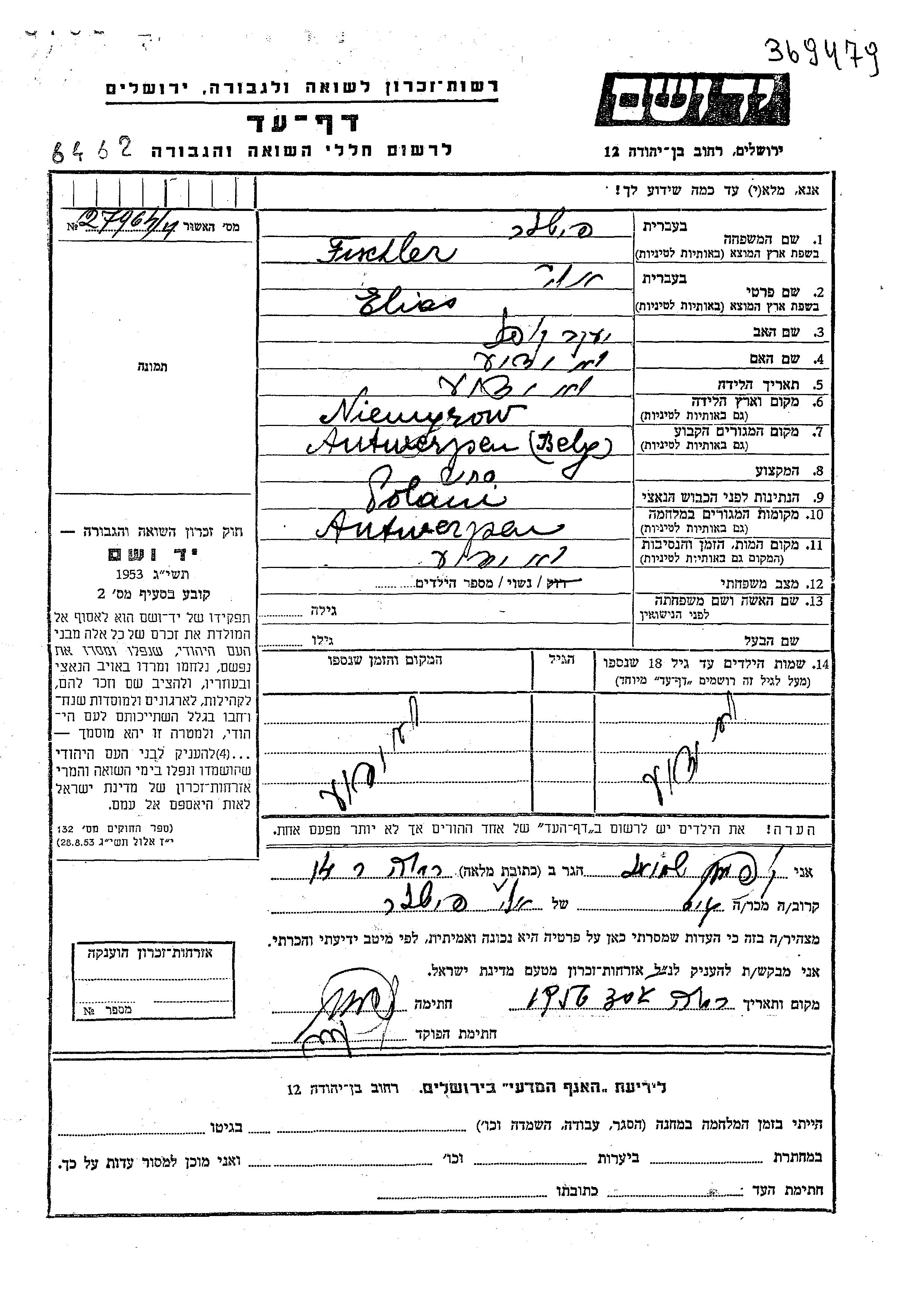 Elias Fischler was born in Niemirów, Poland to Yaakov. He was a merchant and married. Prior to WWII he lived in Antwerpen, Belgium. During the war he was in Antwerpen, Belgium. Elias was murdered in the Shoah.