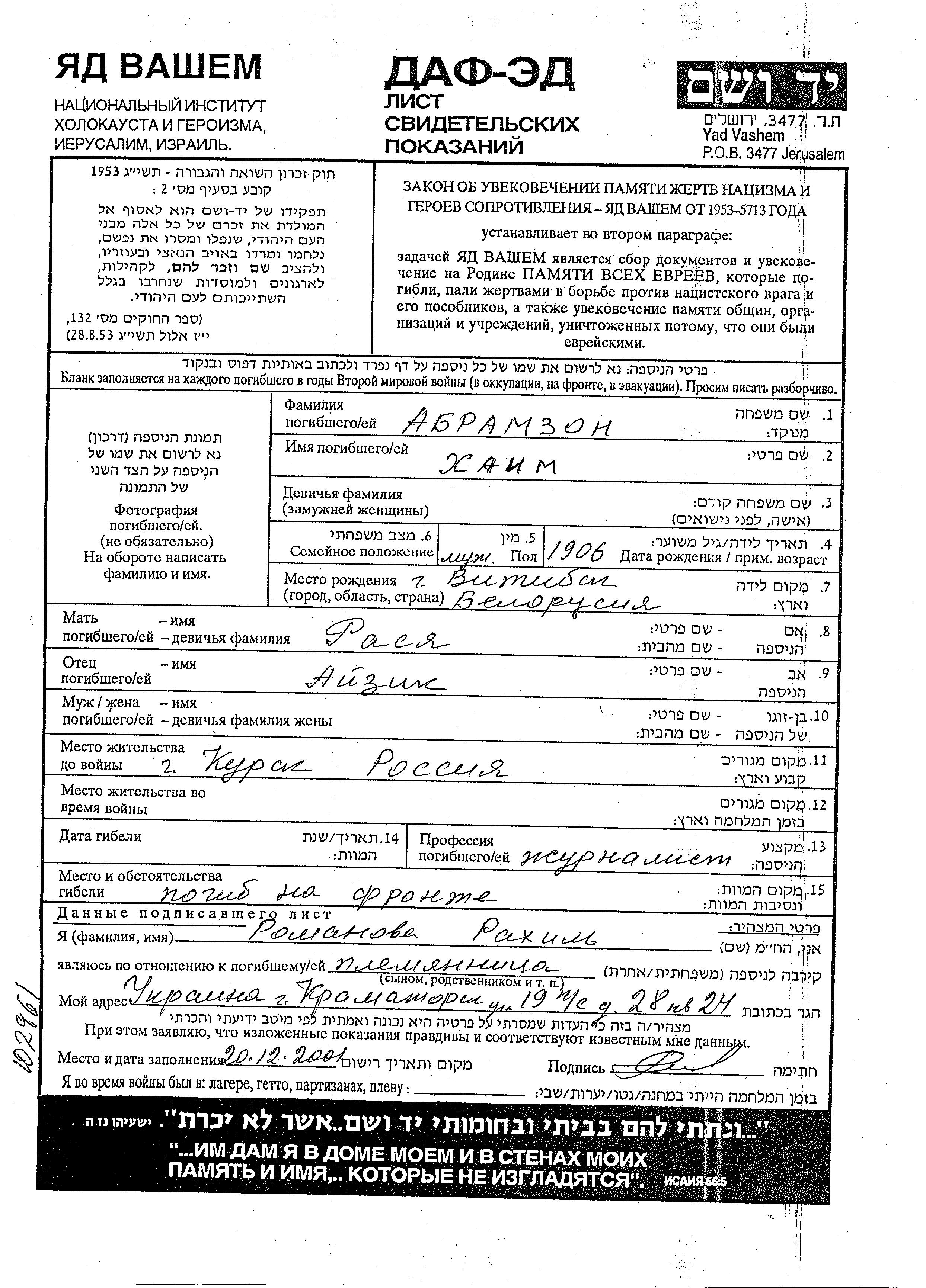 Search by last name of the submitter of the Page of Testimony, including diminutives or nicknames