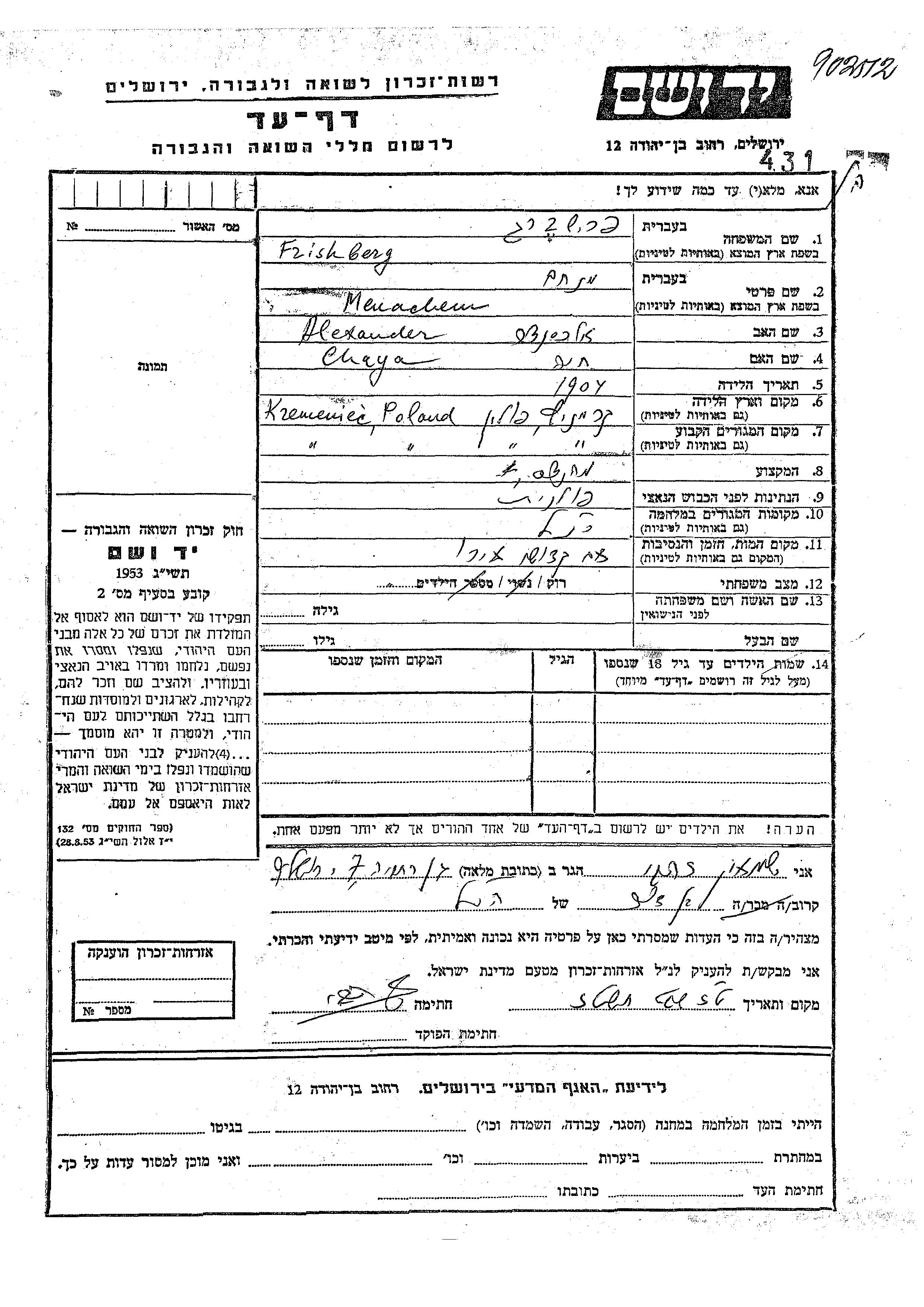 Search by name of Prewar permanent residence, Town, Village, District, Region or Country.