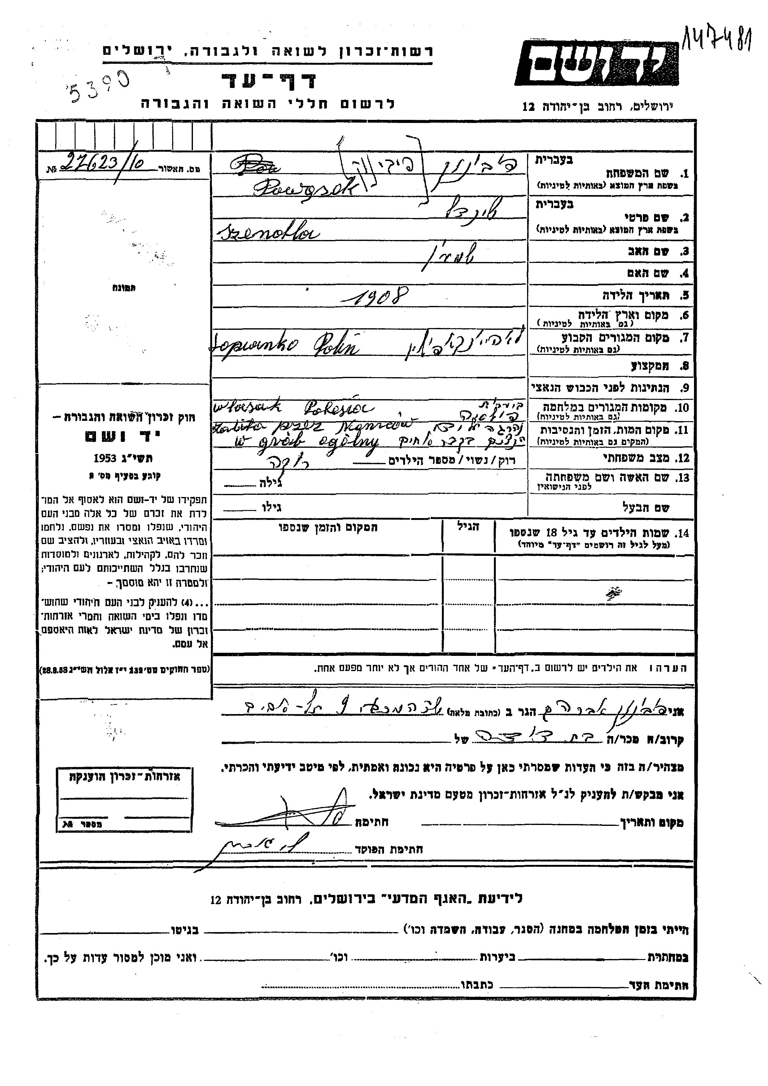 Yad Vashem - Pages of Testimony Names Memorial Collection