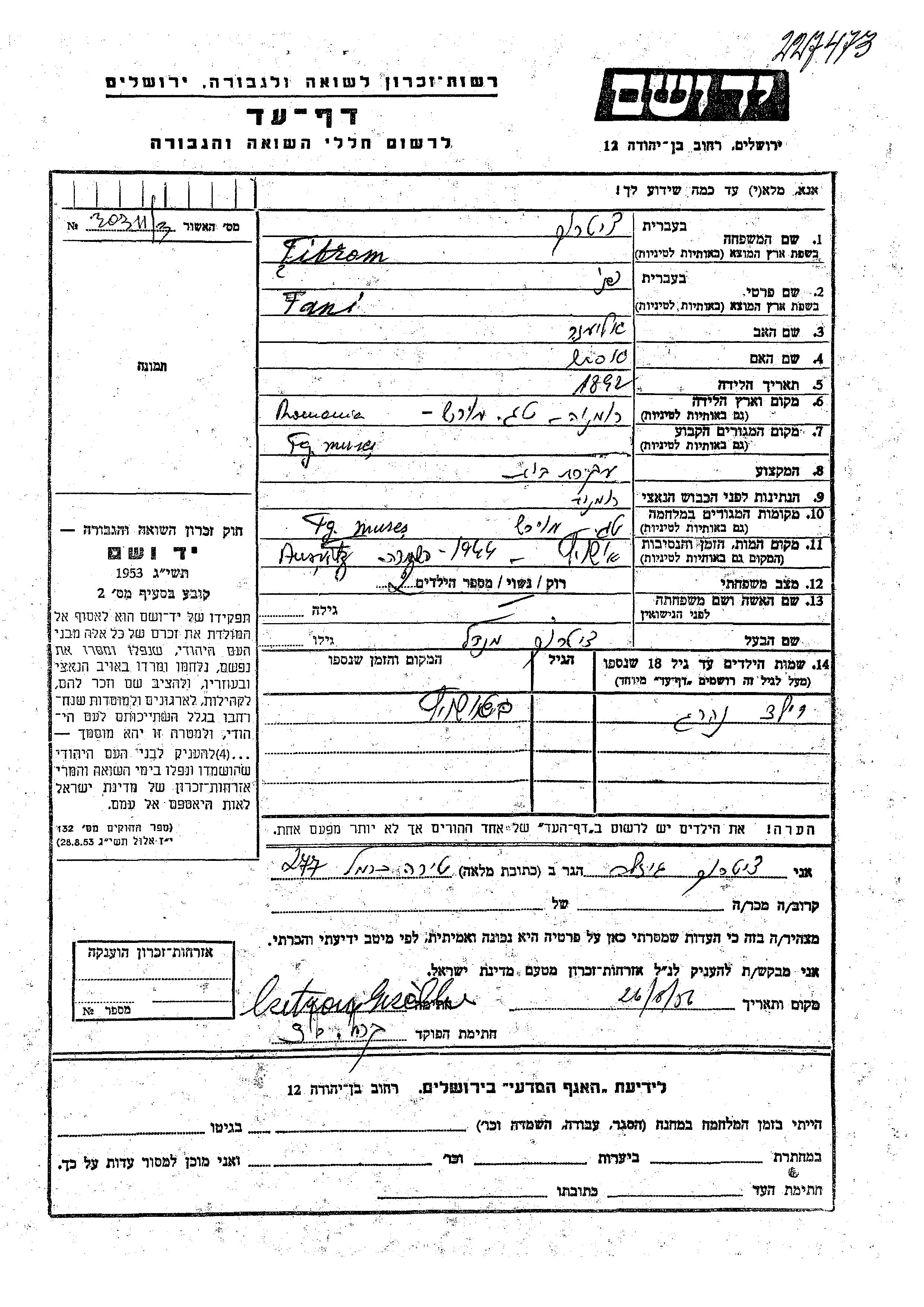 Yad Vashem - Pages of Testimony Names Memorial Collection