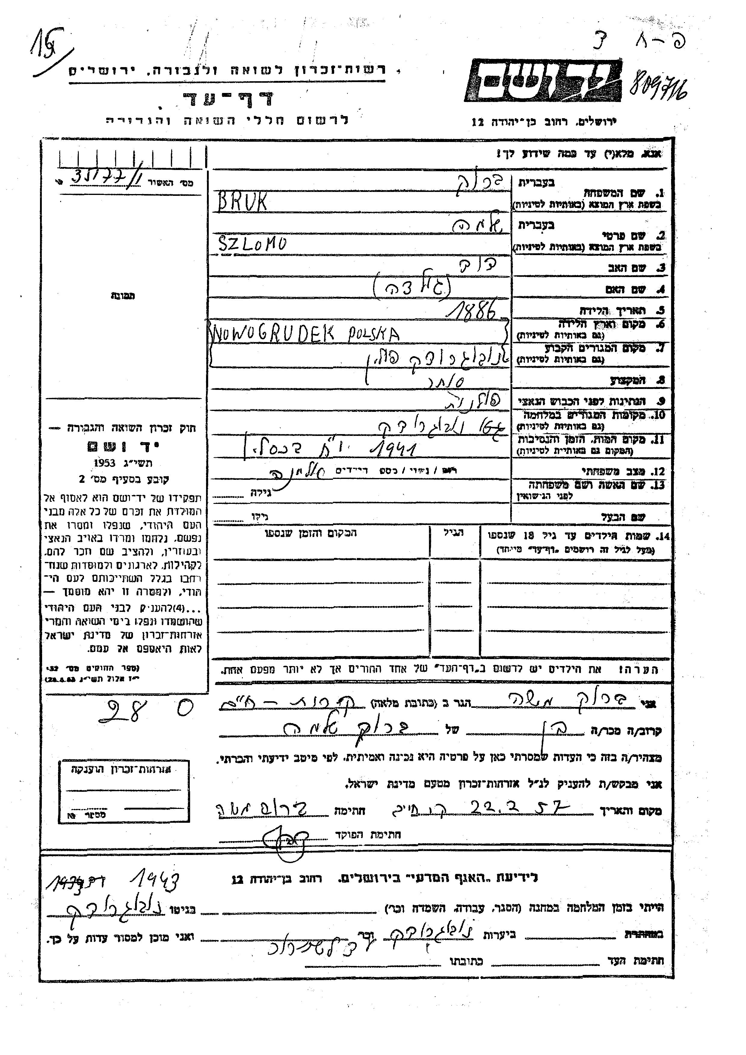 Search by last name of the submitter of the Page of Testimony, including diminutives or nicknames