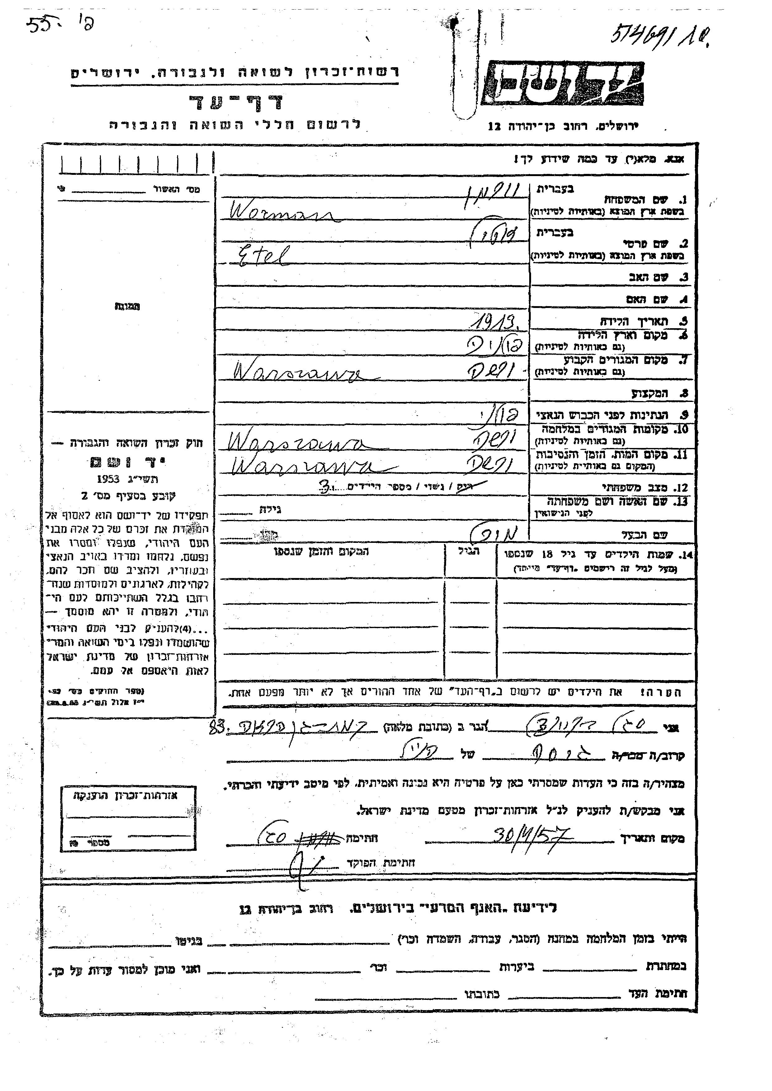 Worman Etel 1919 Warszawa, Poland Page of Testimony