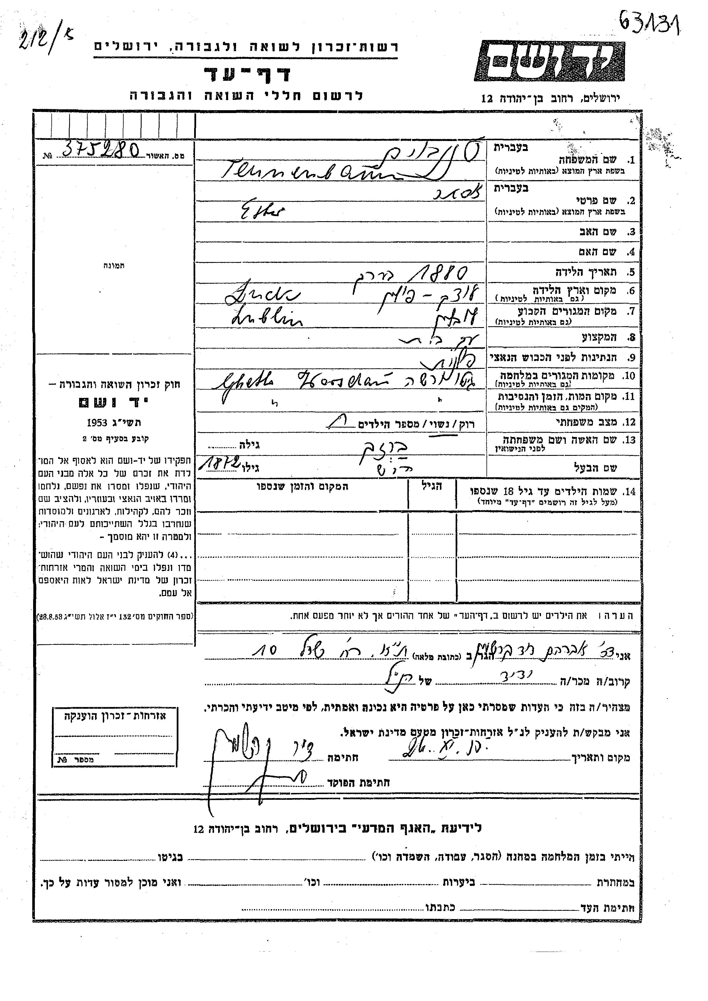 Yad Vashem - Pages of Testimony Names Memorial Collection