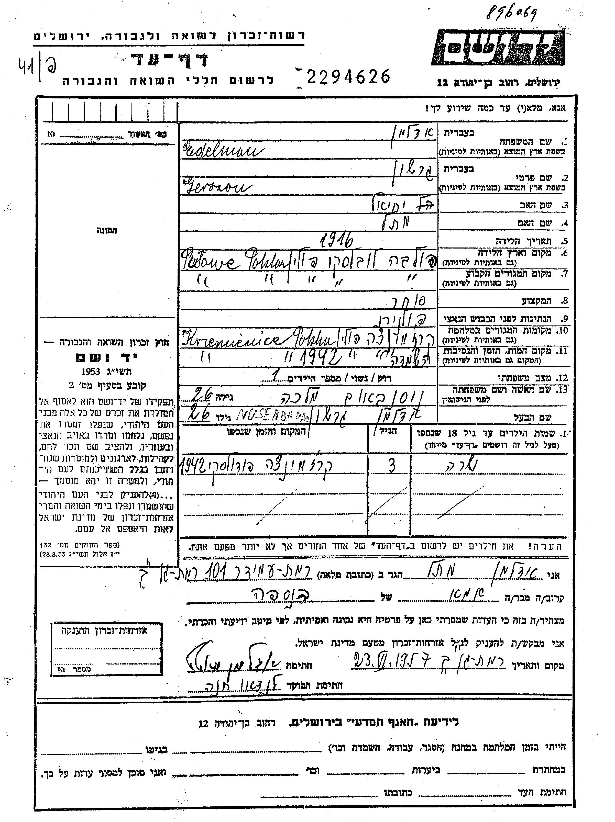 Yad Vashem - Pages of Testimony Names Memorial Collection