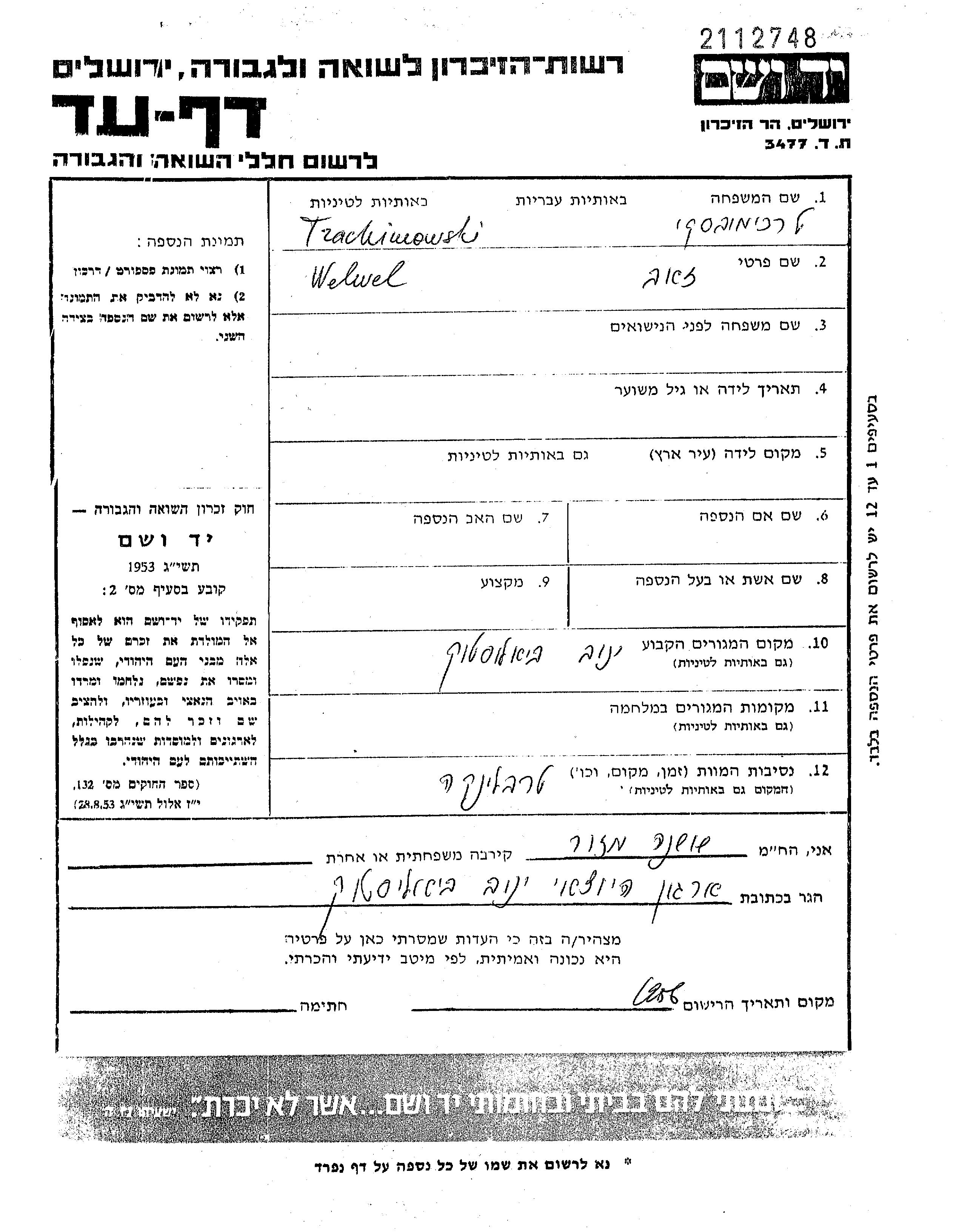 Trachimowski Welwel Zeev Janow Sokolski, Poland Page of Testimony
