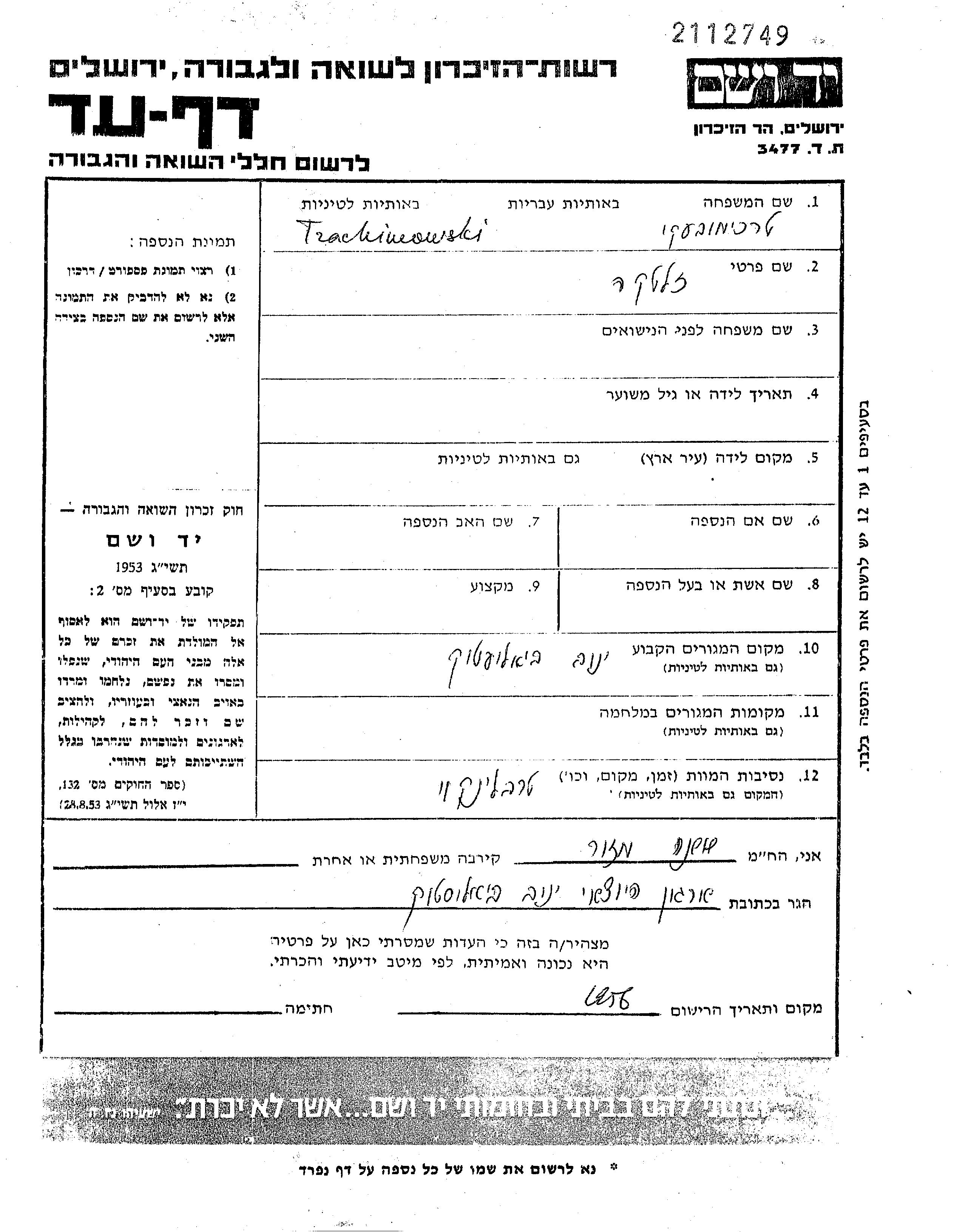 Yad Vashem - Pages of Testimony Names Memorial Collection