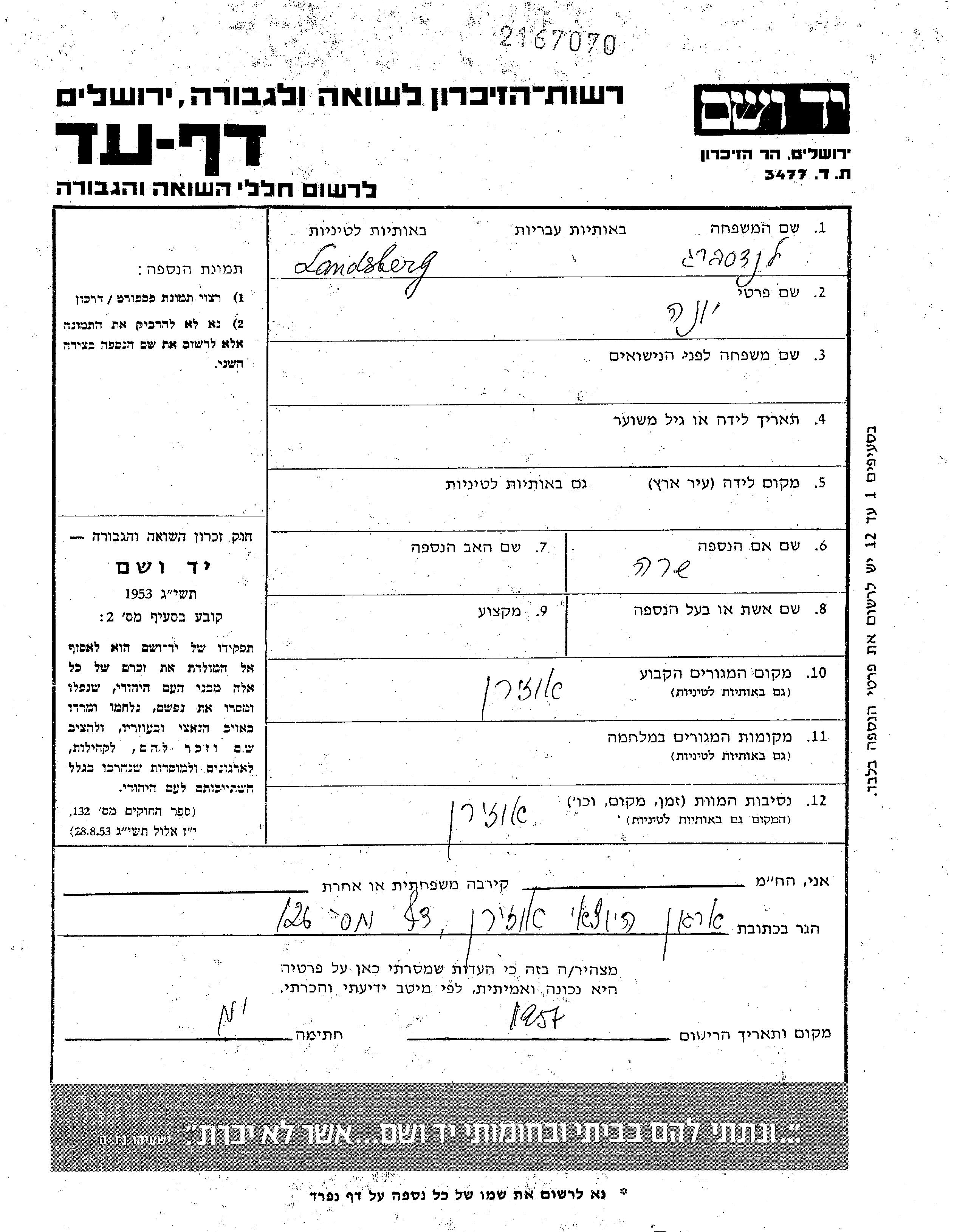 Landsberg Yona Ozieran, Poland Page of Testimony