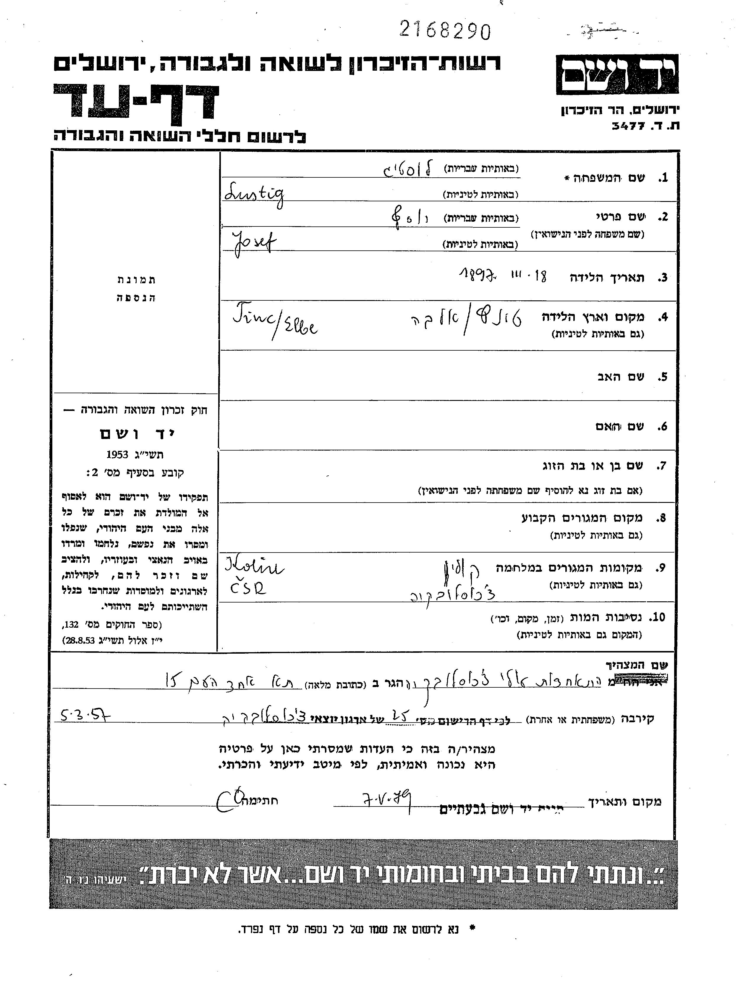 Yad Vashem - Pages of Testimony Names Memorial Collection