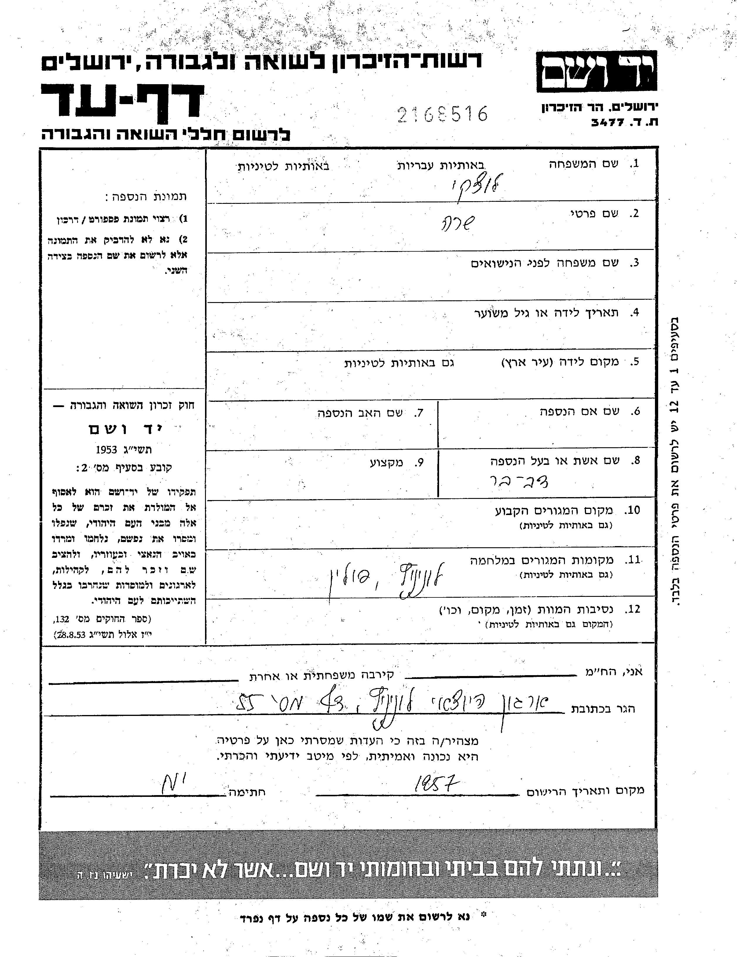 Yad Vashem - Pages of Testimony Names Memorial Collection