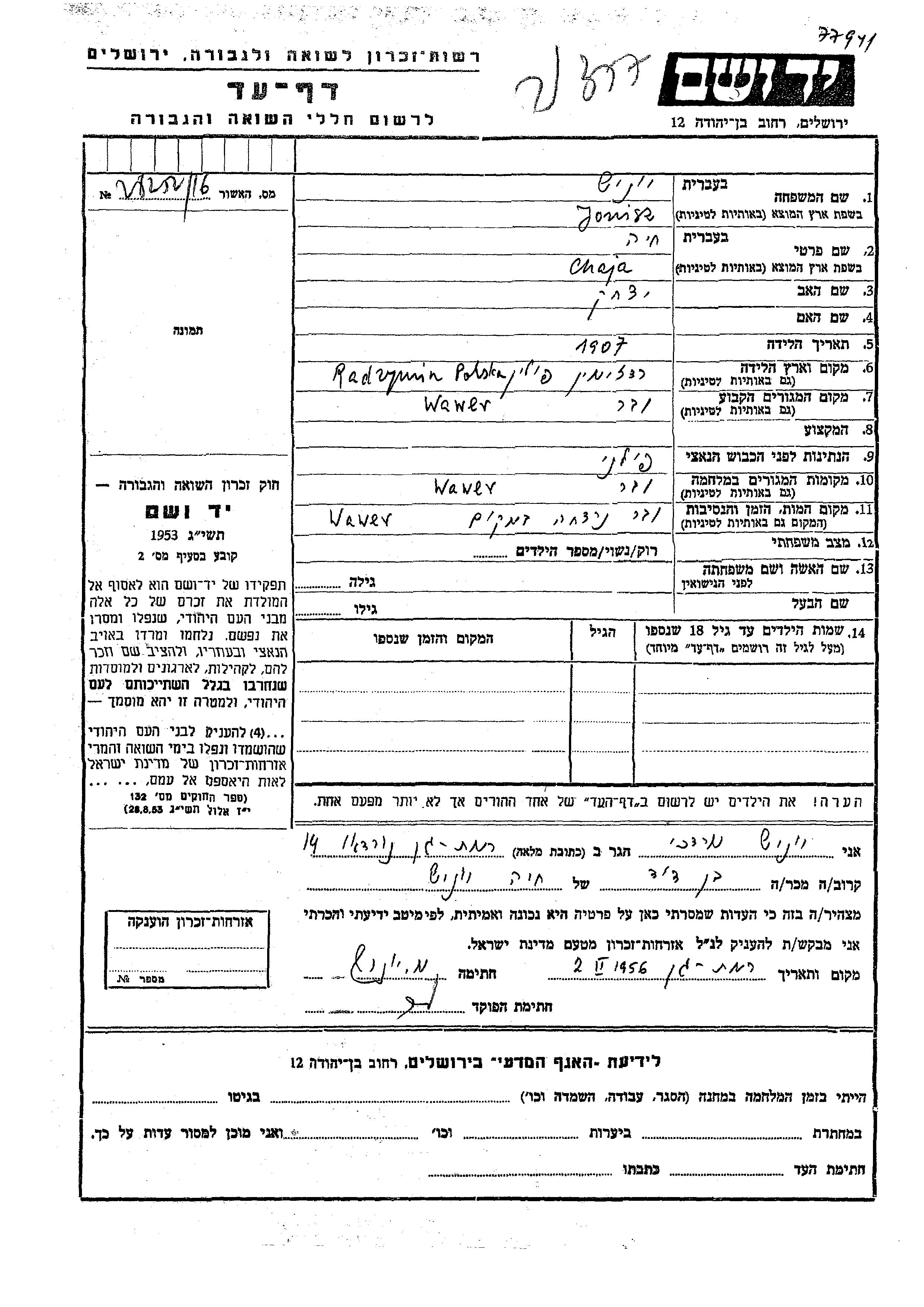 Jonisz Chaja 1907 Wawer, Poland Page of Testimony