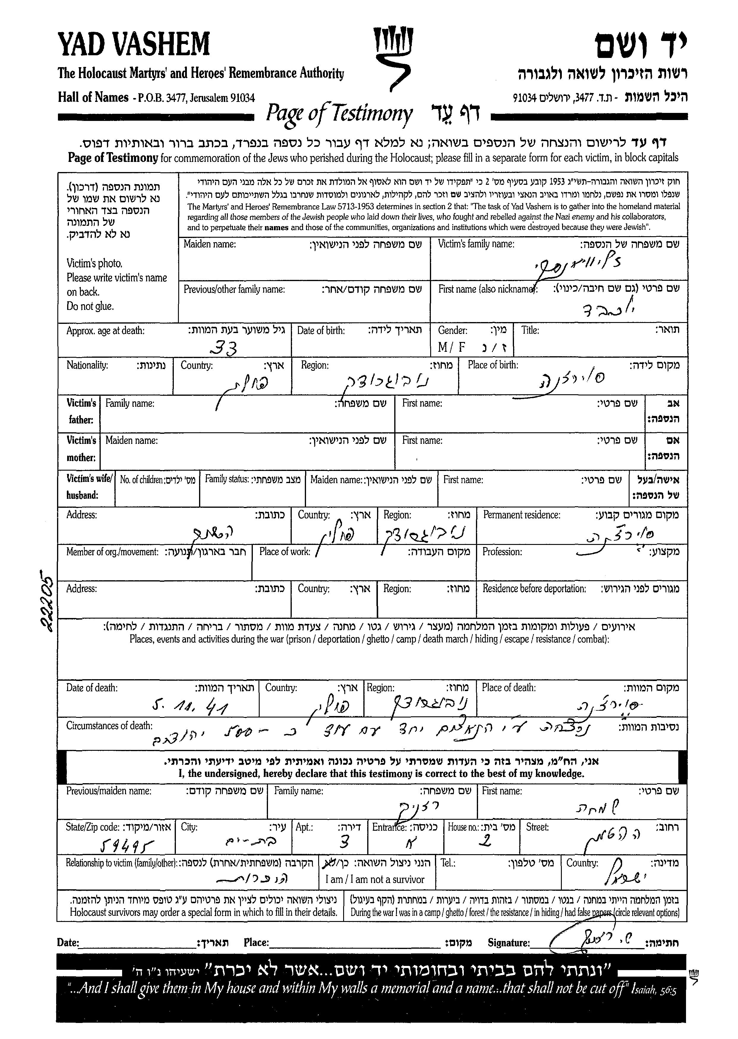 Yad Vashem - Pages of Testimony Names Memorial Collection